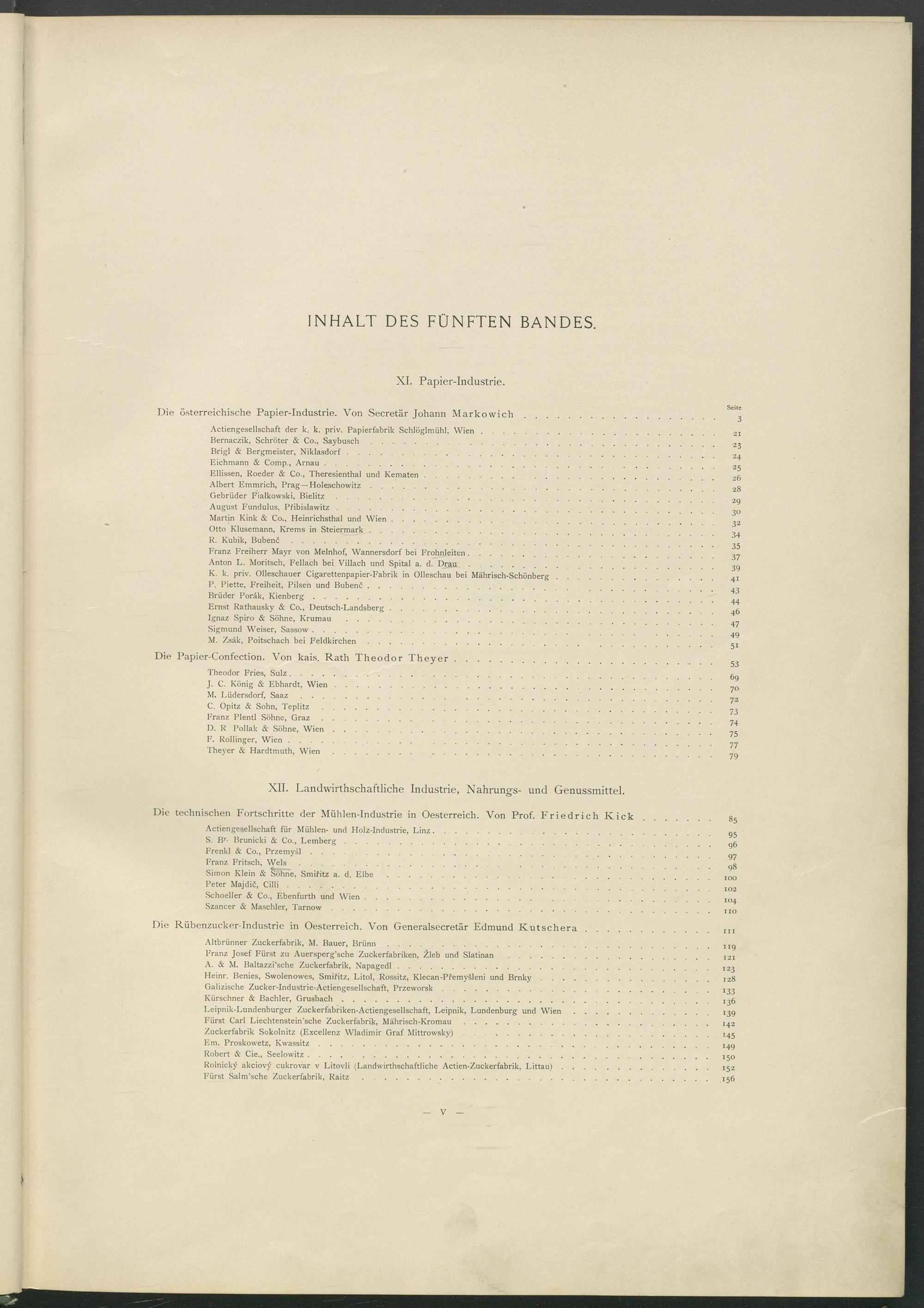 INHALT DES FÜNFTEN BANDES.