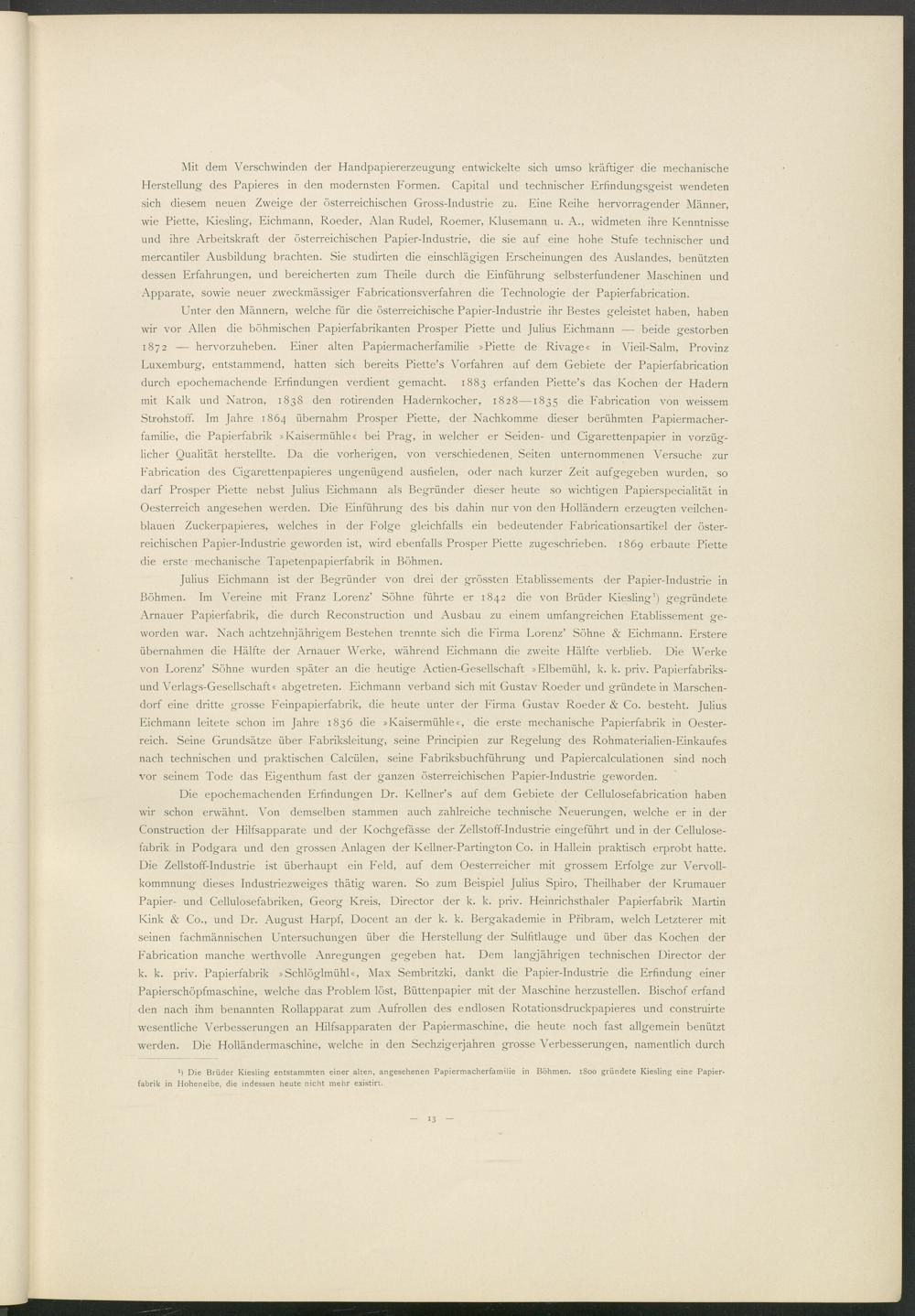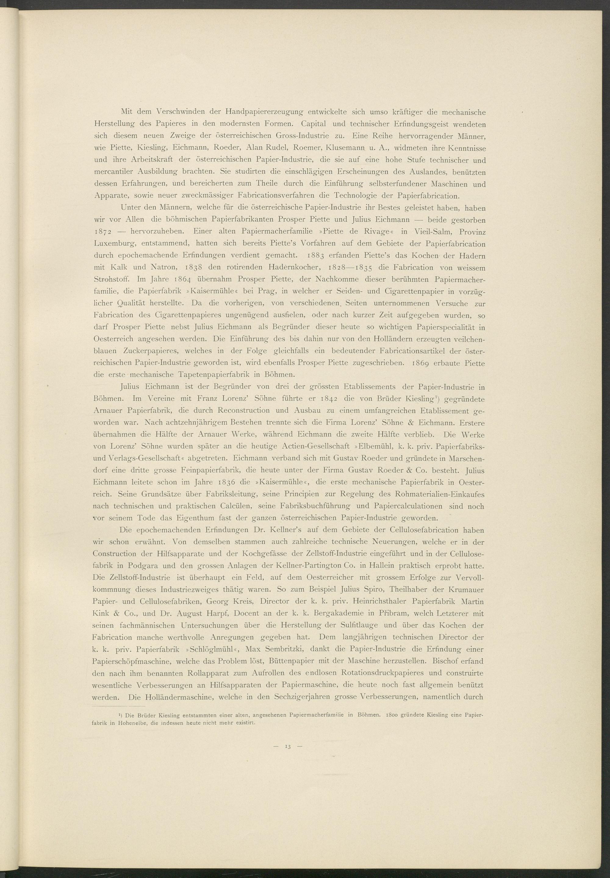 >) Die Brüder Kiesling entstammten einer alten, angesehenen Papiermacherfamilie in Böhmen. 1S00 gründete Kiesling eine Papierfabrik in Hohenelbe, die indessen heute nicht mehr existirt.