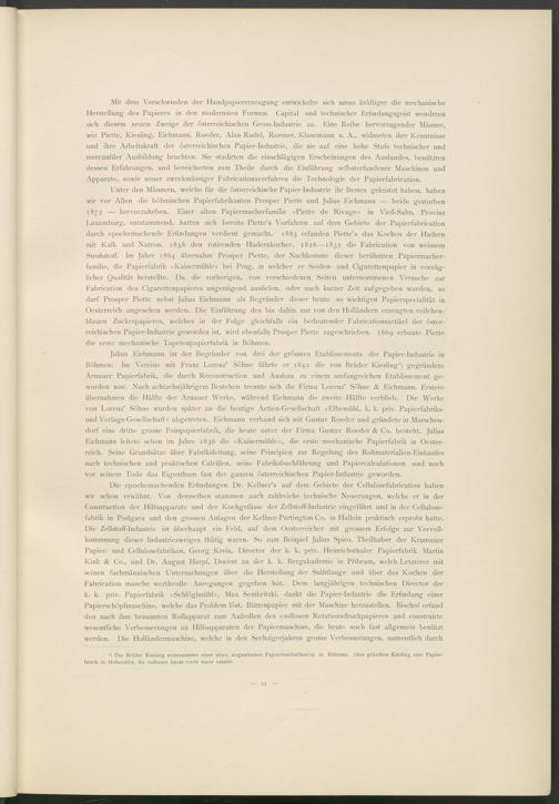 Mit dem Verschwinden der Handpapiererzeugung entwickelte sich umso kräftiger die mechanische Herstellung des Papieres in den modernsten Formen. Capital und technischer Erfindungsgeist wendeten sich diesem neuen Zweige der österreichischen Gross-Industrie zu. Eine Reihe hervorragender Männer, wie Piette, Kiesling, Eichmann, Roeder, Alan Rudel, Roemer, Klusemann u. A., widmeten ihre Kenntnisse und ihre Arbeitskraft der österreichischen Papier-Industrie, die sie auf eine hohe Stufe technischer und mercantiler Ausbildung brachten. Sie studirten die einschlägigen Erscheinungen des Auslandes, benützten dessen Erfahrungen, und bereicherten zum Theile durch die Einführung selbsterfundener Maschinen und Apparate, sowie neuer zweckmässiger Fabricationsverfahren die Technologie der Papierfabrication.