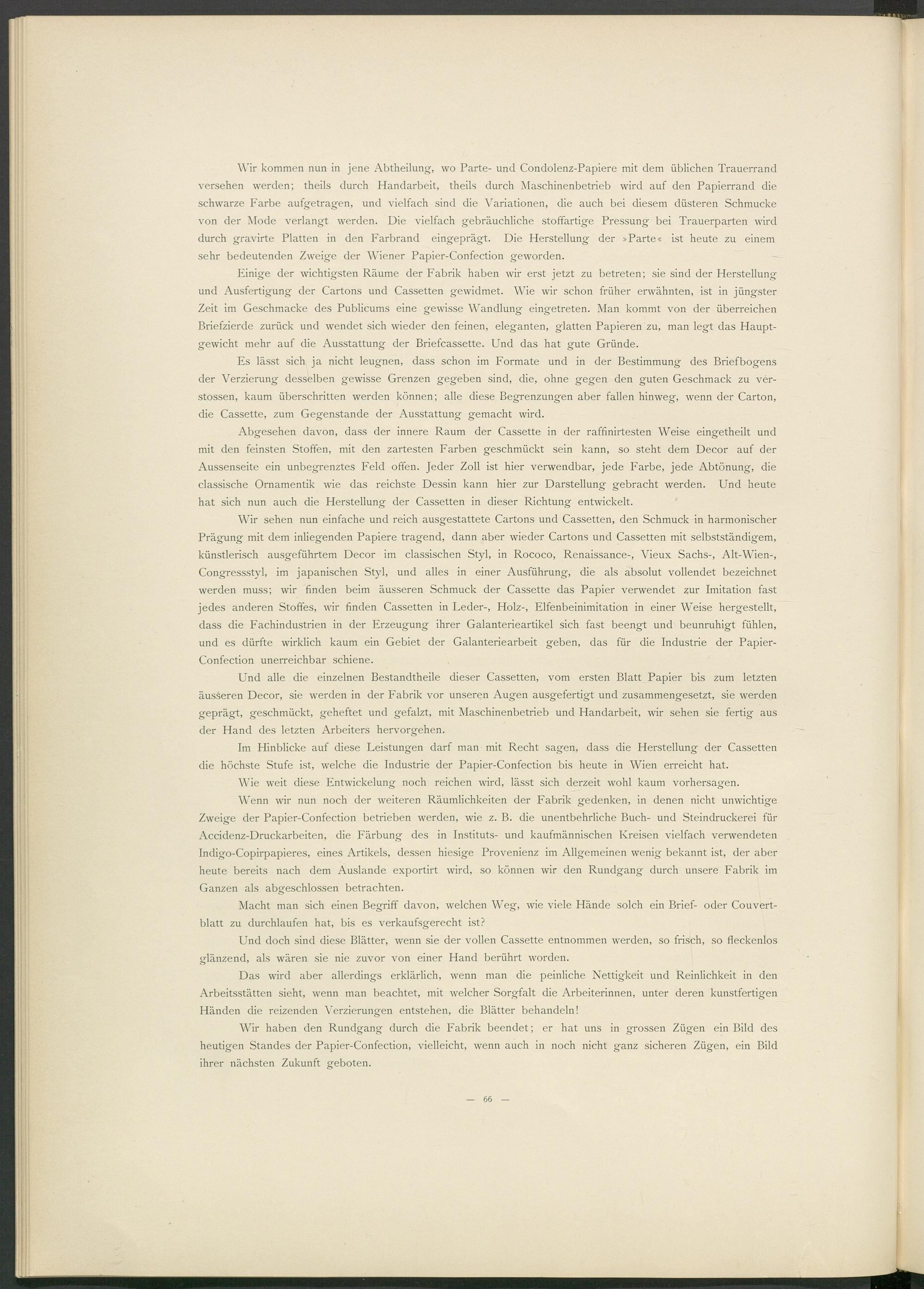 Im Hinblicke auf diese Leistungen darf man mit Recht sagen, dass die Herstellung der Cassetten die höchste Stufe ist, welche die Industrie der Papier-Confection bis heute in Wien erreicht hat.