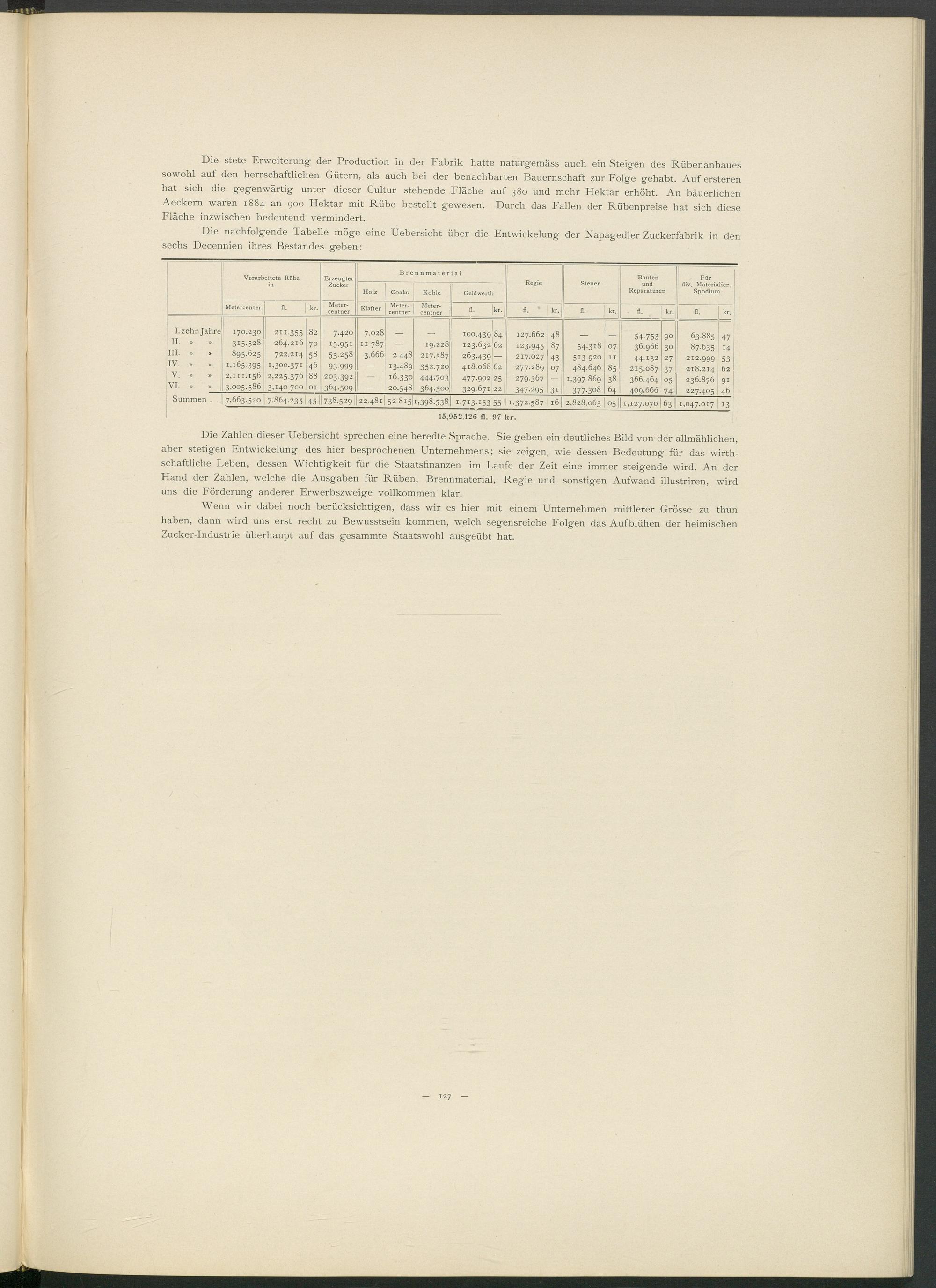 Wenn wir dabei noch berücksichtigen, dass wir es hier mit einem Unternehmen mittlerer Grösse zu thun haben, dann wird uns erst recht zu Bewusstsein kommen, welch segensreiche Folgen das Aufblühen der heimischen Zucker-Industrie überhaupt auf das gesammte Staatswohl ausgeübt hat.