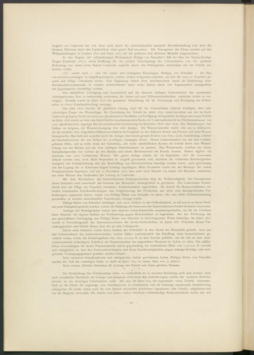 Durch seine Initiative wurde dieses Institut der Selbsthilfe in den Dienst der Humanität gestellt, denn aus den Ueberschüssen des Assecuranzvereines, welche früher ausschliesslich der Schaffung eines Garantiefondes gewidmet waren, wurde ein Gründungsfond von circa 320.000 fl. zu dem Zwecke gebildet, um für alle an dem Asse- curanzverbande betheiligten Fabriken ein Pensionsinstitut der angestellten Beamten ins Leben zu rufen. Die alljährlichen Zuwendungen für dieses Pensionsinstitut haben gegenwärtig die beträchtliche Höhe von 1,500.000 fl. erreicht und ermöglichen es, dass den Pensionsberechtigten und ihren Familienmitgliedern gegen mässige Beiträge sehr weitgehende Versorgungsgenüsse gewährt werden können.