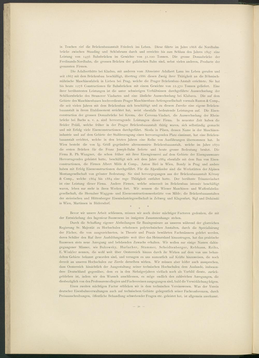 in Teschen rief die Brückenbauanstalt Friedeck ins Leben. Diese führte im Jahre 1868 die Nordbahnbrücke zwischen Stauding und Schönbrunn durch und erreichte bis zum Schluss des Jahres 1897 eine Leistung von 1456 Bahnbrücken im Gewichte von 31.100 Tonnen. Die grosse Donaubrücke der Ferdinands-Nordbahn, die grossen Brücken der galizischen Bahn sind, nebst vielen anderen, Producte der genannten Firmen.