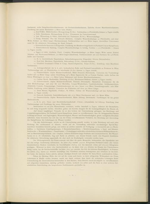 13. Actiengesellschaft der k. k. priv. hydraulischen Kalk- und Portland-Cementfabrik zu Perlmoos in Wien. Turbinenanlage mit 118 Pferdekräften in Scheibmühl (N.-Oe.) (binnen 14 Tagen erstellt).