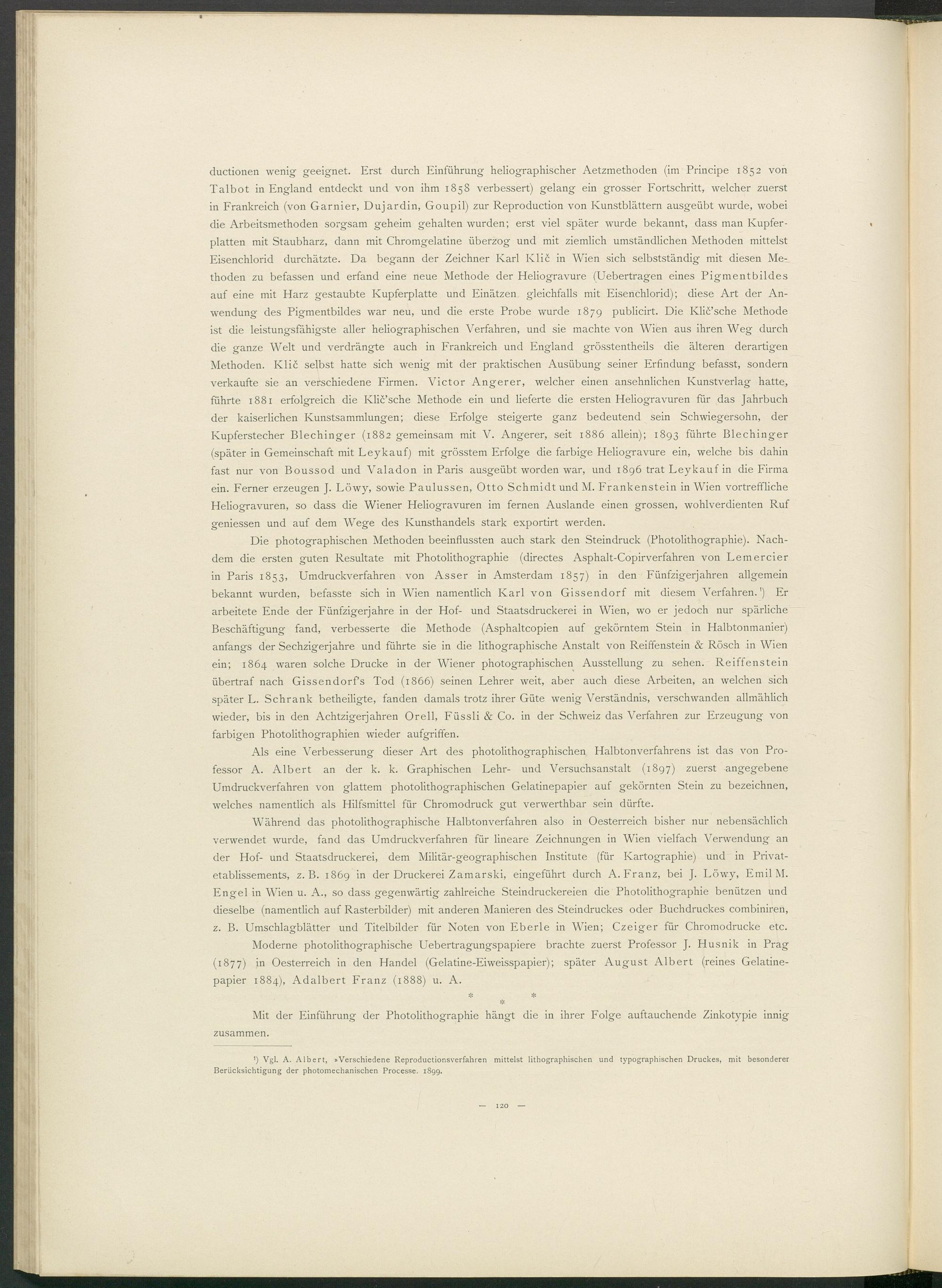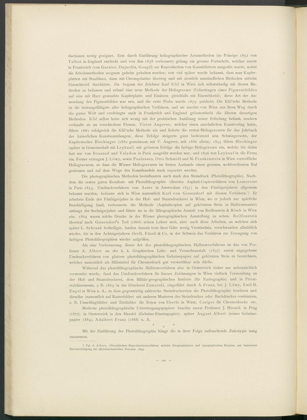 ’) Vgl. A. Albert, »Verschiedene Reproductionsverfahren mittelst lithographischen und typographischen Druckes, mit besonderer Berücksichtigung der photomechanischen Processe. 1899.