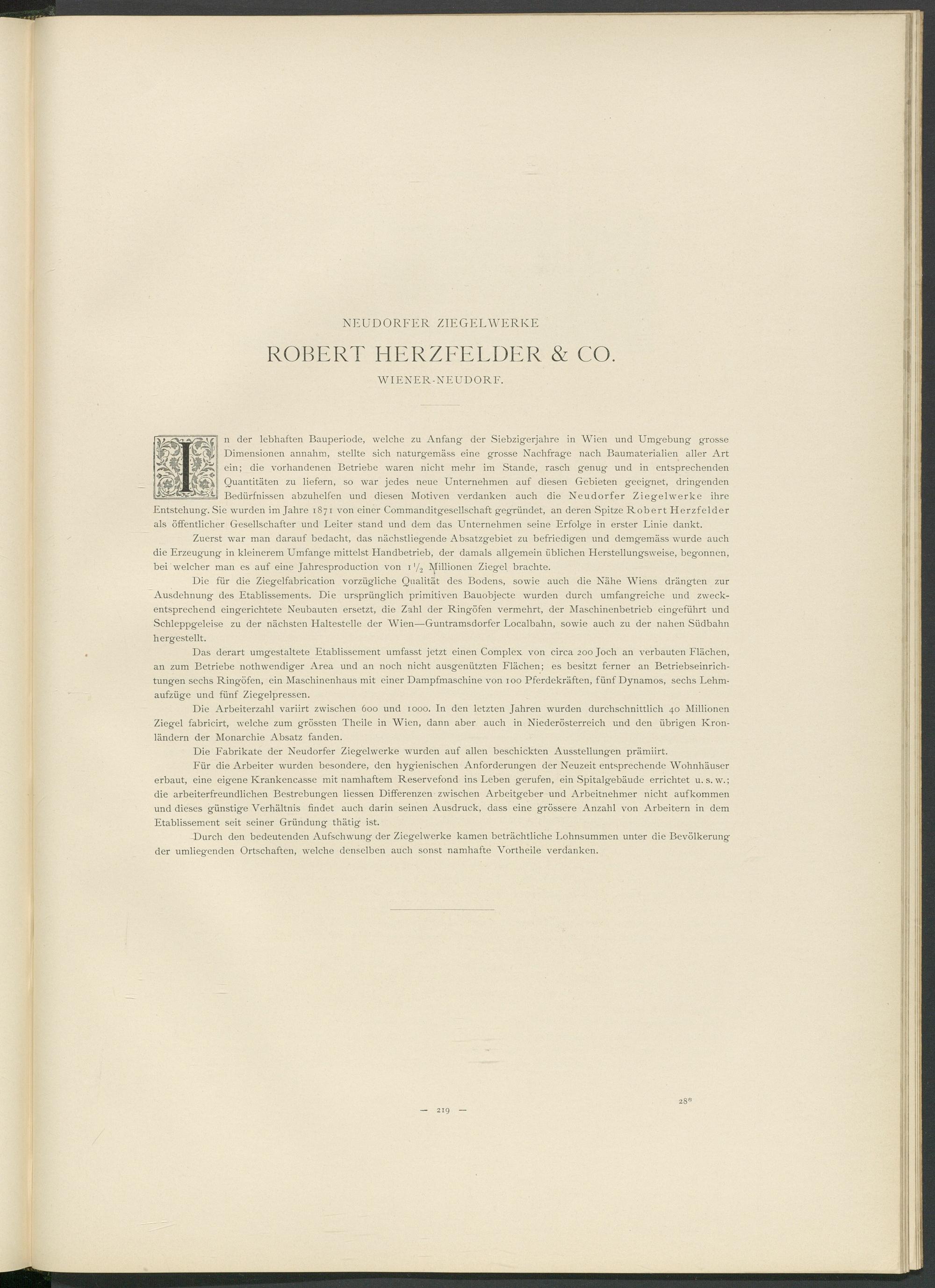 Ziegel fabricirt, welche zum grössten Theile in Wien, dann aber auch in Niederösterreich und den übrigen Kron- ländern der Monarchie Absatz fanden.