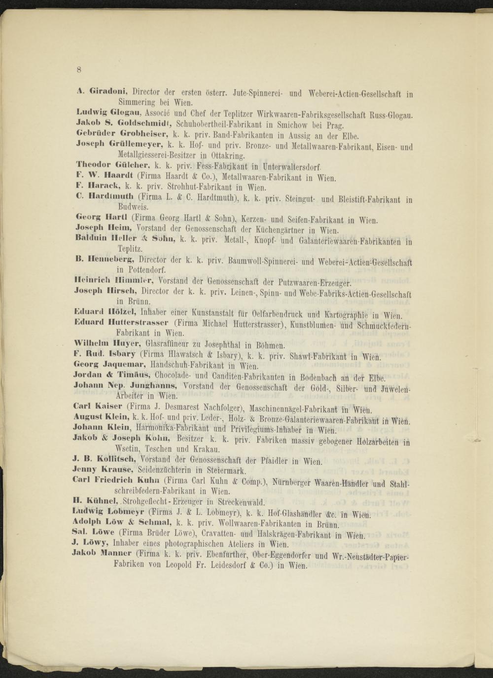 Fduard Hülzel, Inhaber einer Kunstanstalt für Oelfarbendruck und Kartographie in Wien. Fduard Hutterstrasser (Firma Michael Hutterstrasser), Kunstblumen- und Schmuckfedern- Fabrikant in Wien.