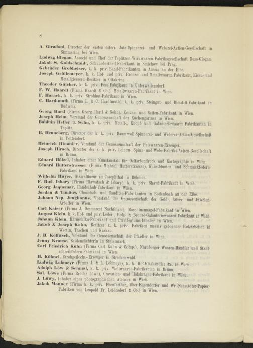 Jordan & Tunaus, Chocolade- und Canditen-Fabrikanten in Bodeubach an der Elbe. Johann Nep. Junghnnns, Vorstand der Genossenschaft der Gold-, Silber- und Juwelen- Arbeiter in Wien.