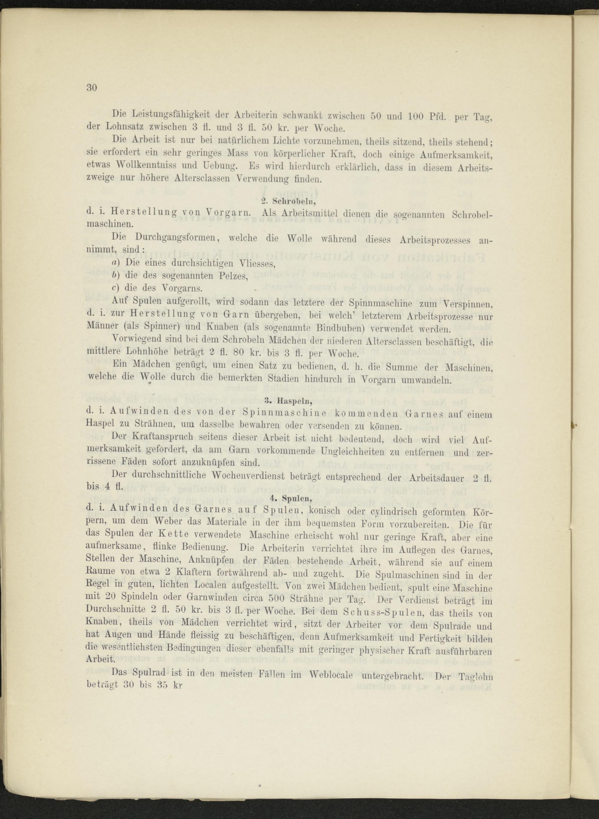 Die Leistungsfähigkeit der Arbeiterin schwankt zwischen 50 und 100 Pfd. per Tag, der Lohnsatz zwischen 3 tl. und 3 ti. 50 kr. per Woche.