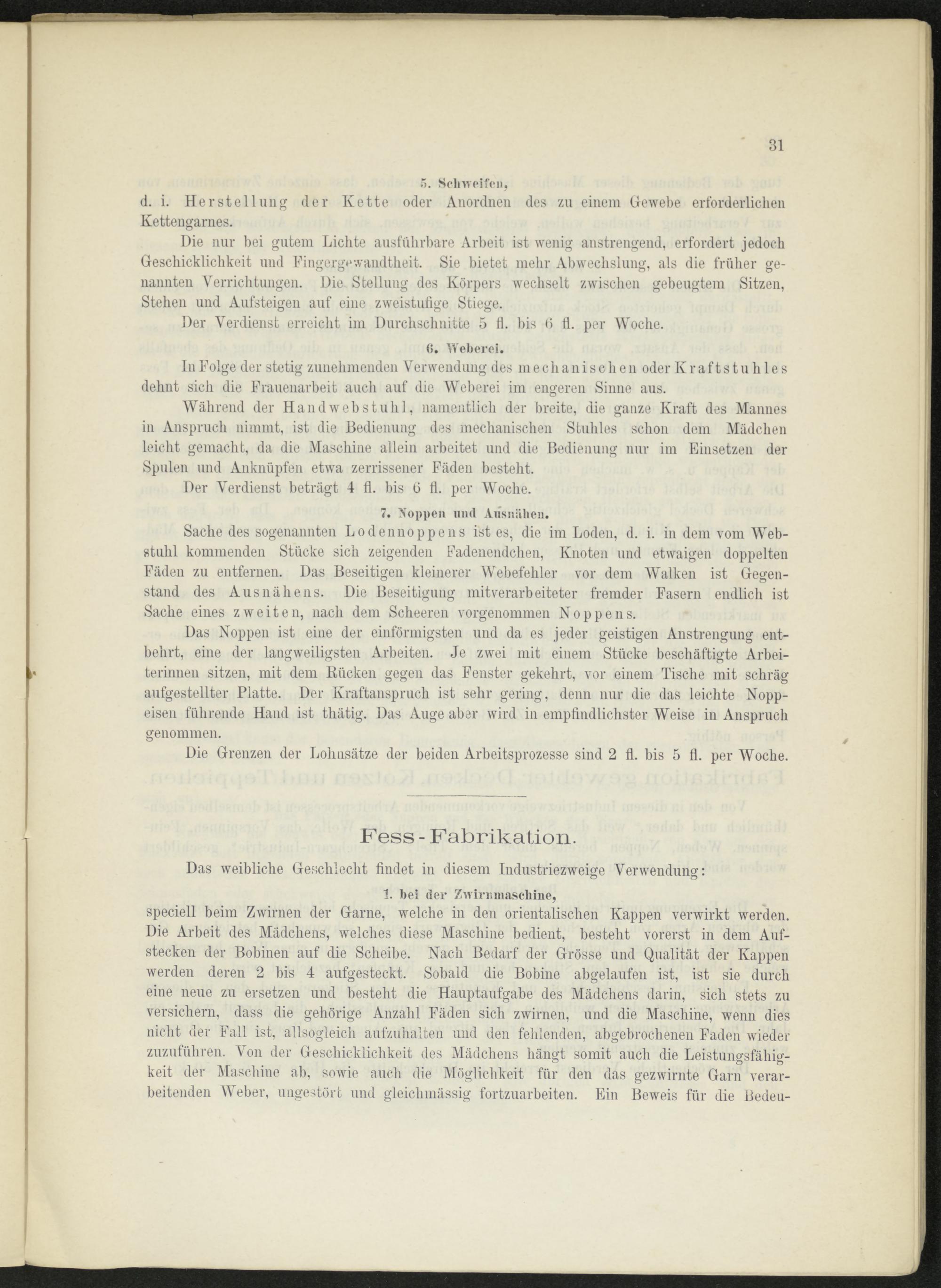 Der Verdienst erreicht im Durchschnitte 5 fl. bis fl 11. per Woche.