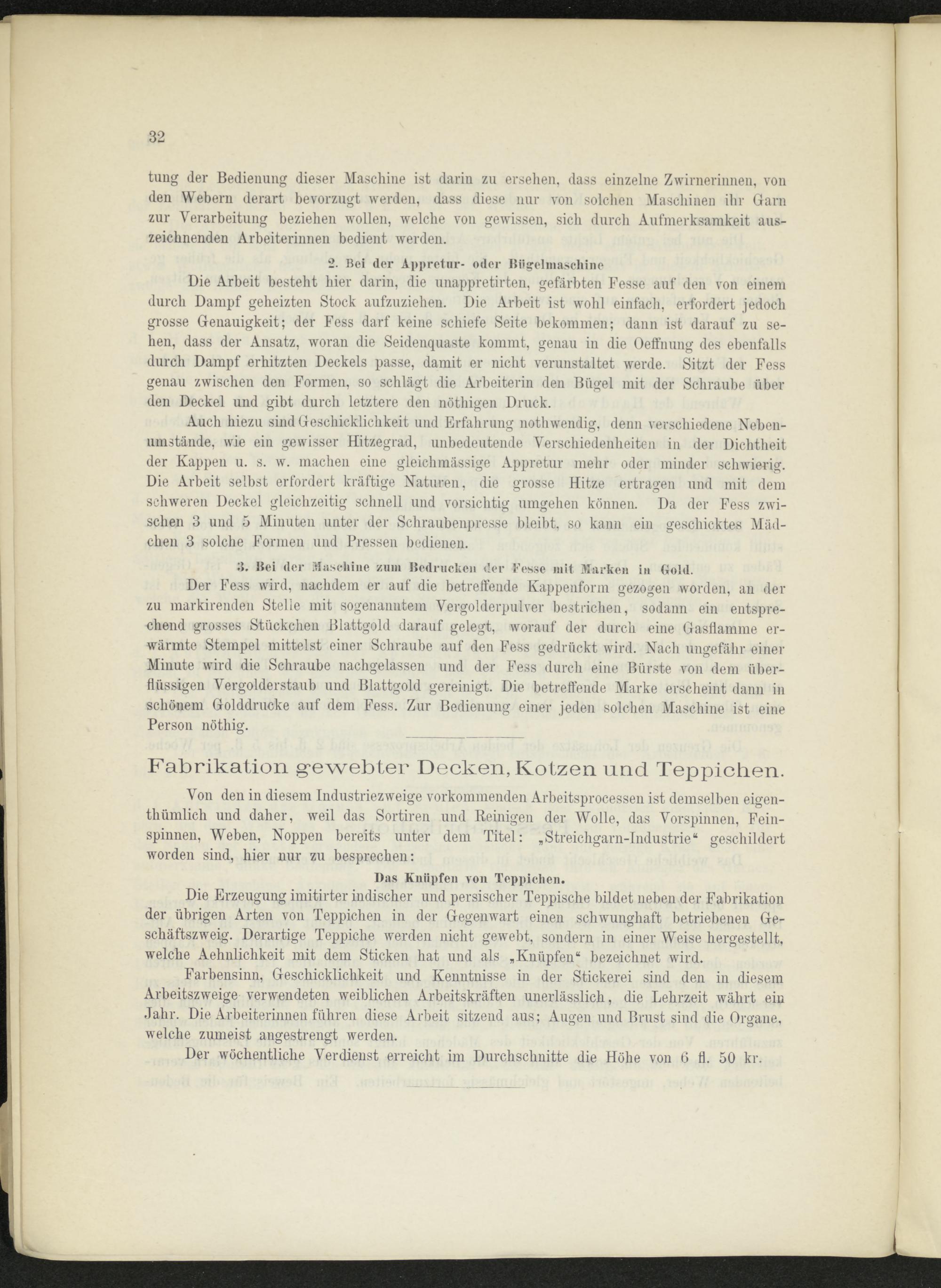 Der wöchentliche Verdienst erreicht im Durchschnitte die Höhe von 6 fl. 50 kr.