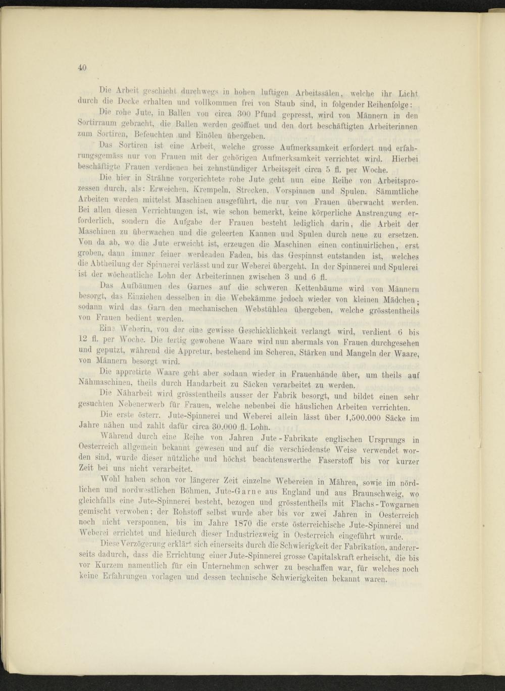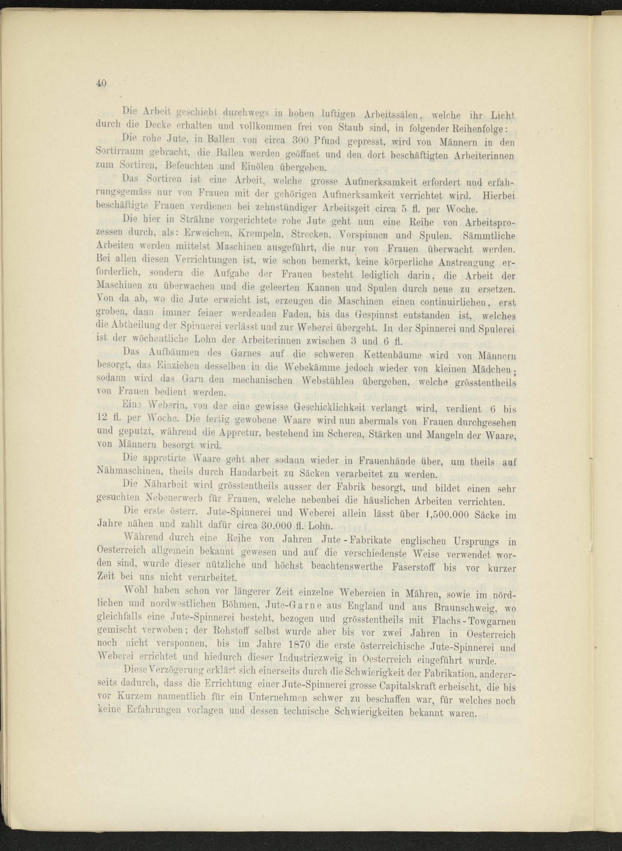 Die erste österr. Jute-Spinnerei und Weberei allein lässt über 1,500.000 Säcke im Jahre nähen und zahlt dafür circa 30.000 fl. Lohn.