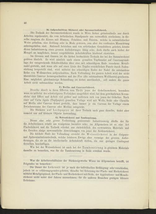 Was die Arbeitsverhältnisse der Stickereigewerbe Wiens im Allgemeinen betrifft, ist Folgendes zu bemerken: