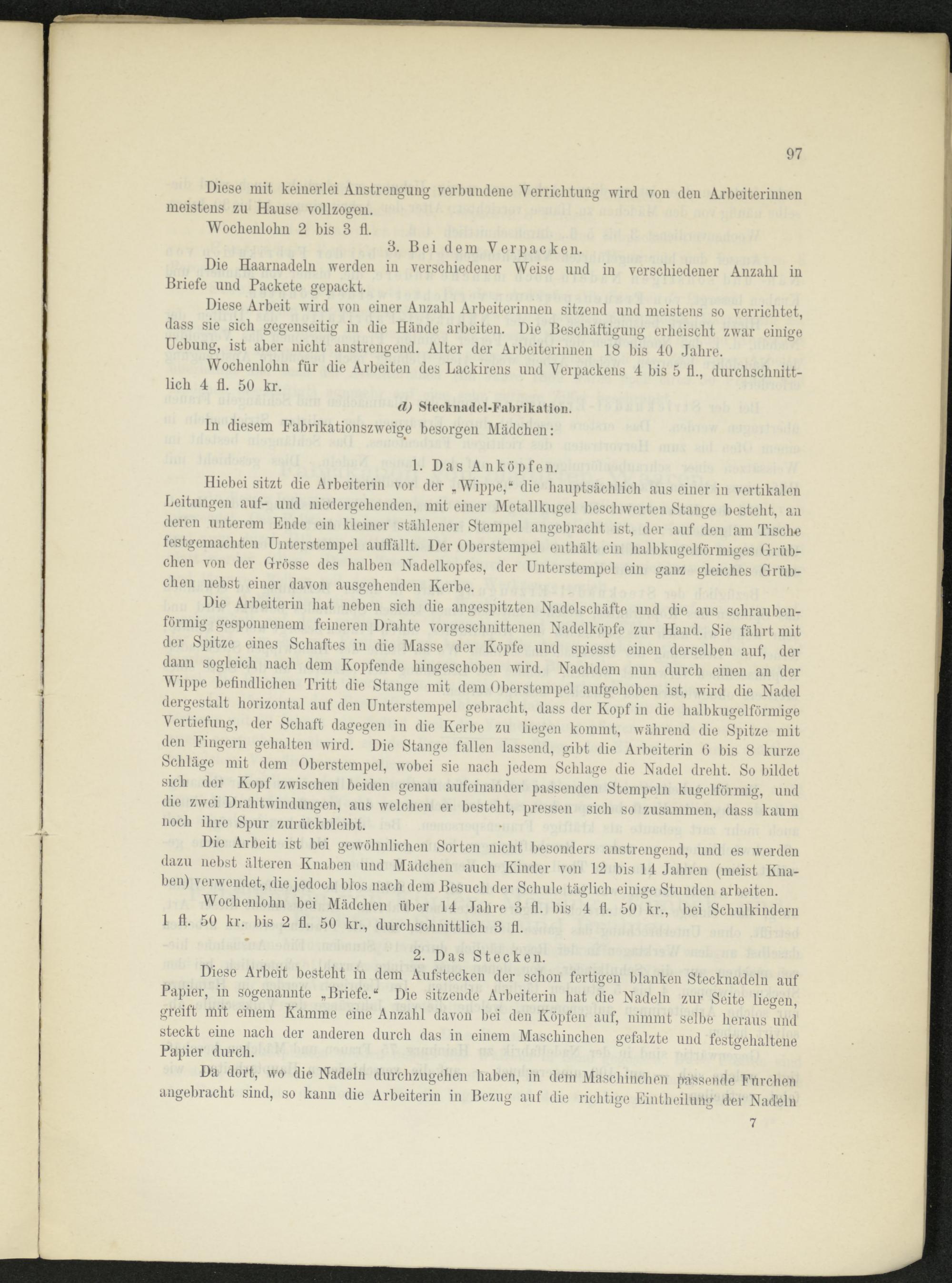 Wochenlohn bei Mädchen über 14 Jahre 3 fl. bis 4 11. 50 kr., bei Schulkindern 1 fl. 50 kr. bis 2 fl. 50 kr., durchschnittlich 3 fl.
