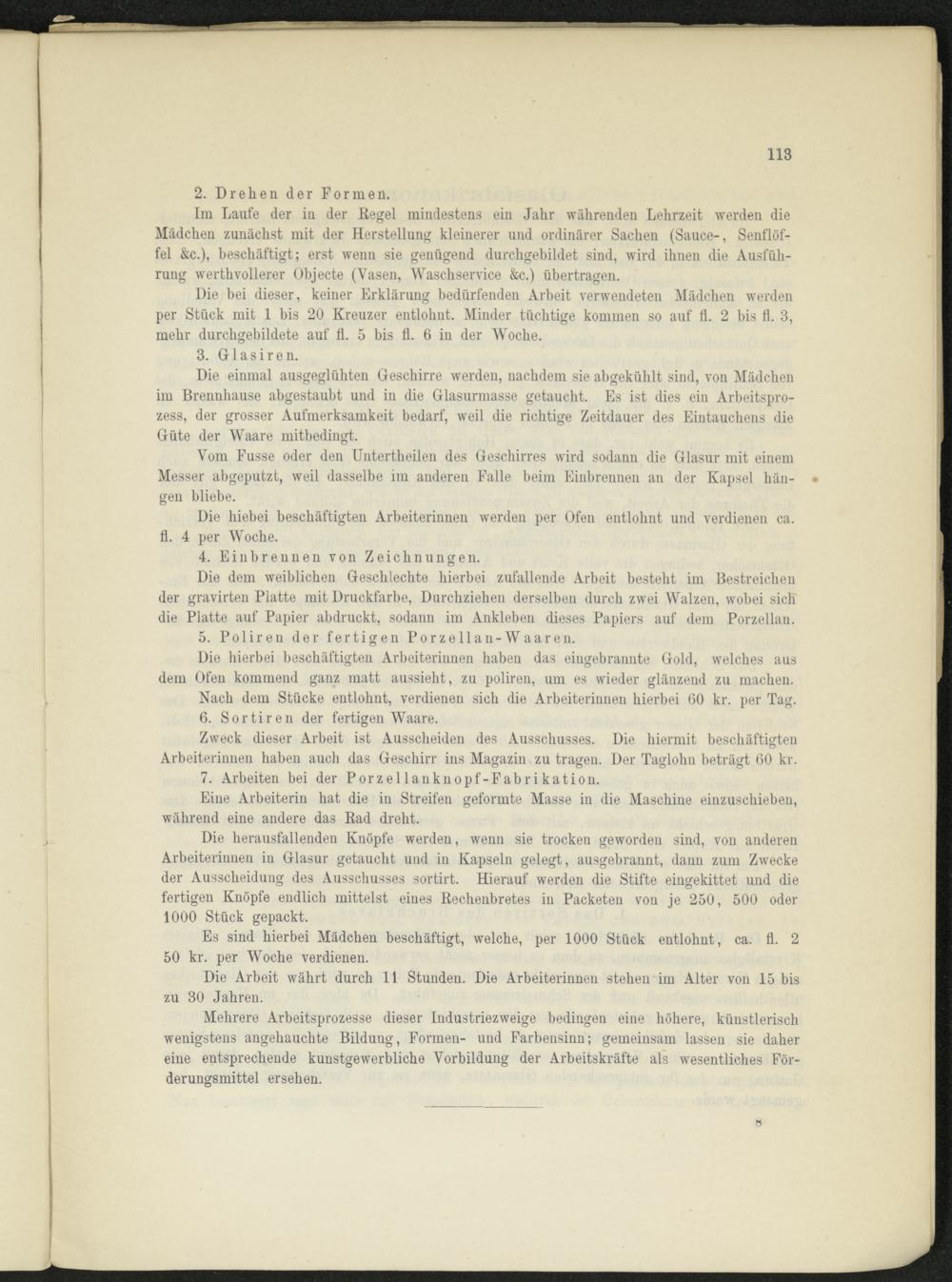 Es sind hierbei Mädchen beschäftigt, welche, per 1000 Stück entlohnt, ca. fl. 2 50 kr. per Woche verdienen.