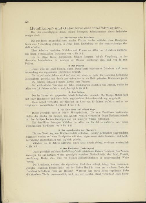Der wöchentliche Verdienst der dabei beschäftigten Mädchen und Frauen, welche im Alter von 18 Jahren aufwärts sind, beträgt 5 bis G fl.