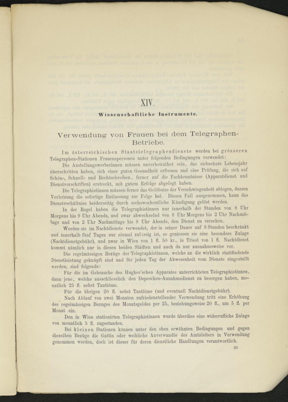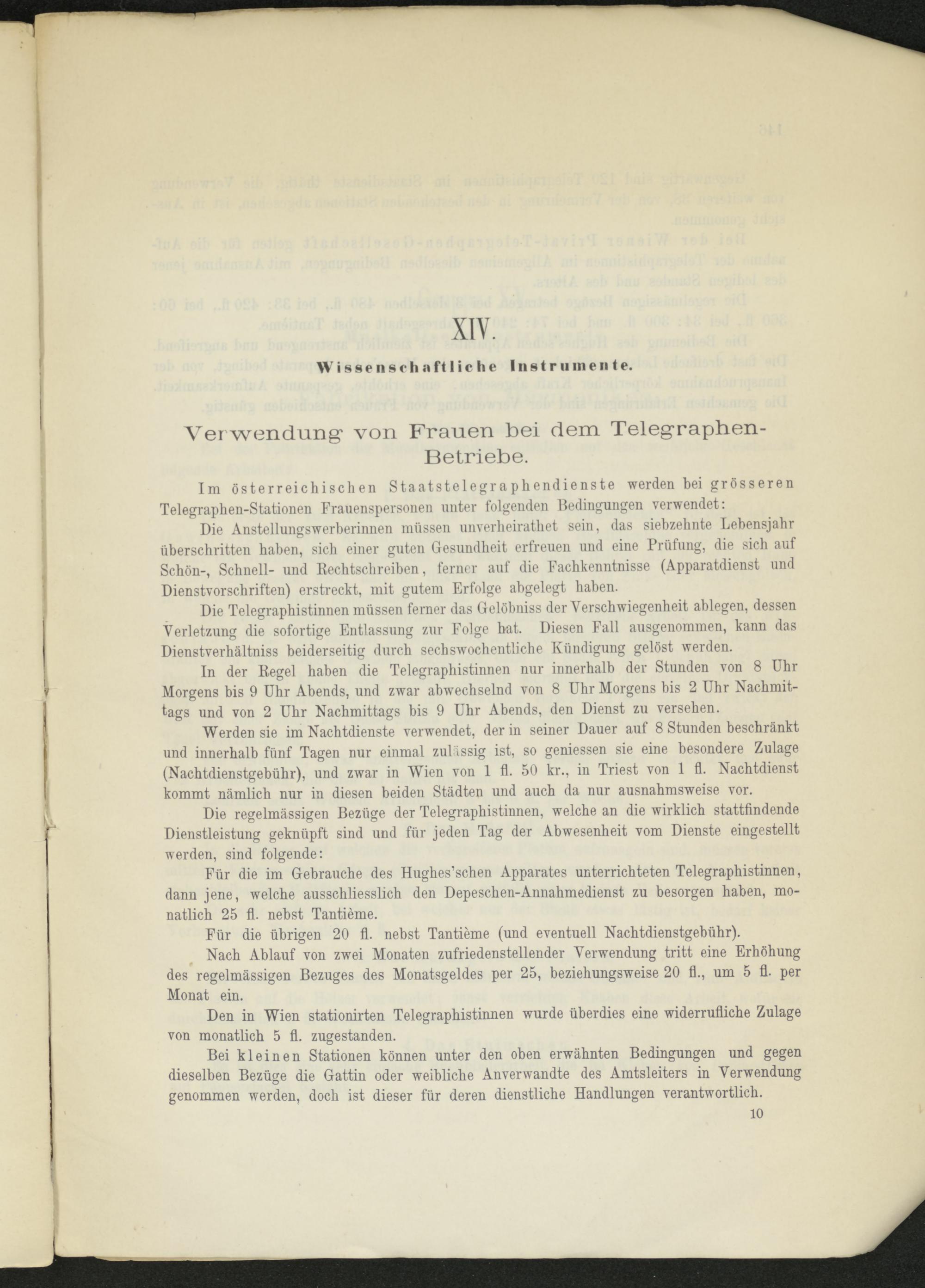 Für die im Gebrauche des Hughes’schen Apparates unterrichteten Telegraphistinnen, dann jene, welche ausschliesslich den Depeschen-Annahmedienst zu besorgen haben, monatlich 25 fl. nebst Tantième.