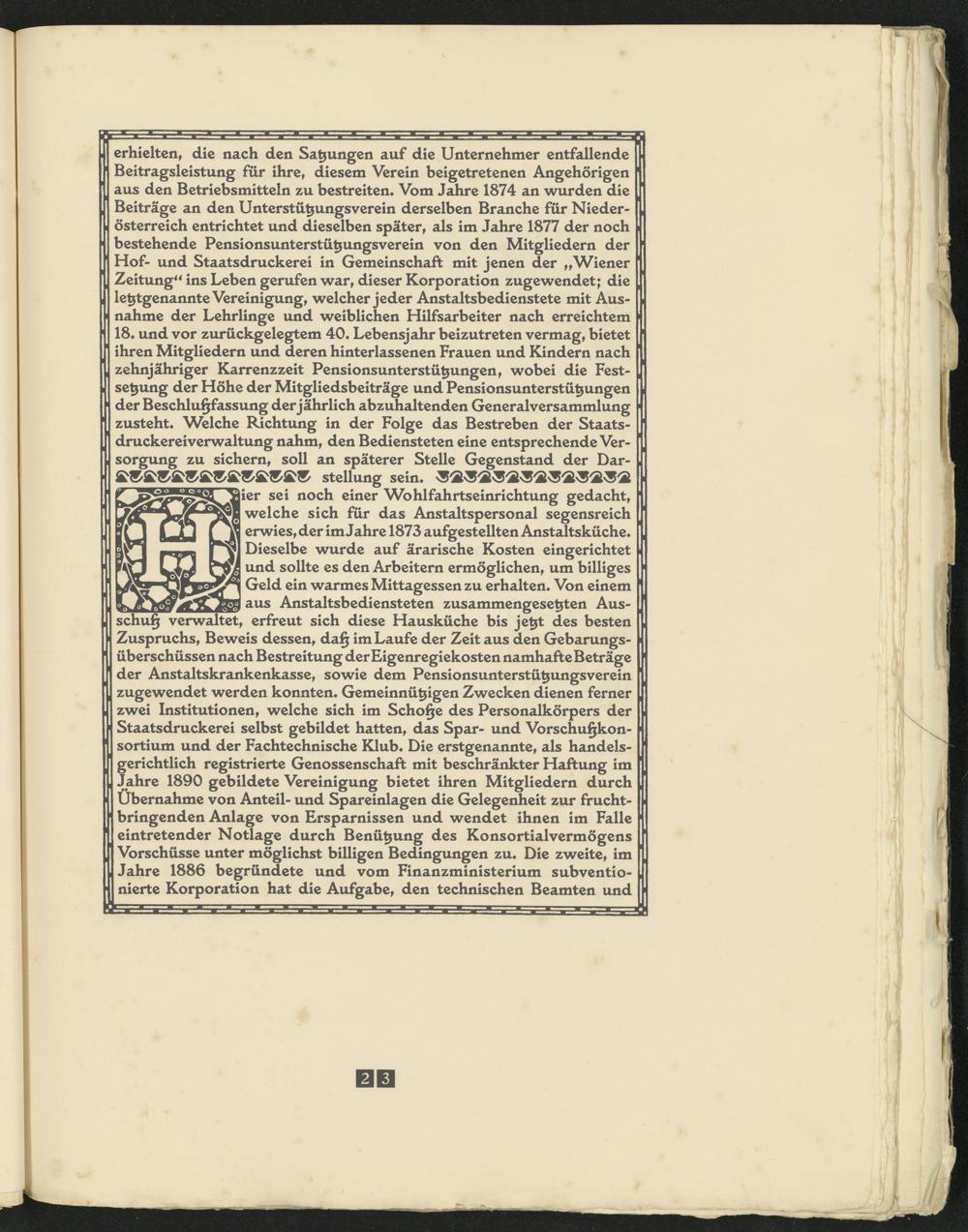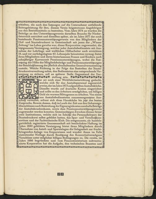 Dieselbe wurde auf ärarische Kosten eingerichtet und sollte es den Arbeitern ermöglichen, um billiges Geld ein warmes Mittagessen zu erhalten« Von einem aus Anstaltsbediensteten zusammengesetzten Ausschuß verwaltet, erfreut sich diese Hausküche bis jetzt des besten Zuspruchs, Beweis dessen, daß im Laufe der Zeit aus den Gebarungsüberschüssen nach Bestreitung der Eigenregiekosten namhafte Beträge der Anstaltskrankenkasse, sowie dem Pensionsunterstützungsverein zugewendet werden konnten« Gemeinnützigen Zwecken dienen ferner zwei Institutionen, welche sich im Schoße des Personalkörpers der Staatsdruckerei selbst gebildet hatten, das Spar- und Vorschußkonsortium und der Fachtechnische Klub« Die erstgenannte, als handelsgerichtlich registrierte Genossenschaft mit beschränkter Haftung im Jahre 1890 gebildete Vereinigung bietet ihren Mitgliedern durch Übernahme von Anteil- und Spareinlagen die Gelegenheit zur fruchtbringenden Anlage von Ersparnissen und wendet ihnen im Falle eintretender Notlage durch Benützung des Konsortialvermögens Vorschüsse unter möglichst billigen Bedingungen zu« Die zweite, im Jahre 1886 begründete und vom Finanzministerium subventionierte Korporation hat die Aufgabe, den technischen Beamten und
