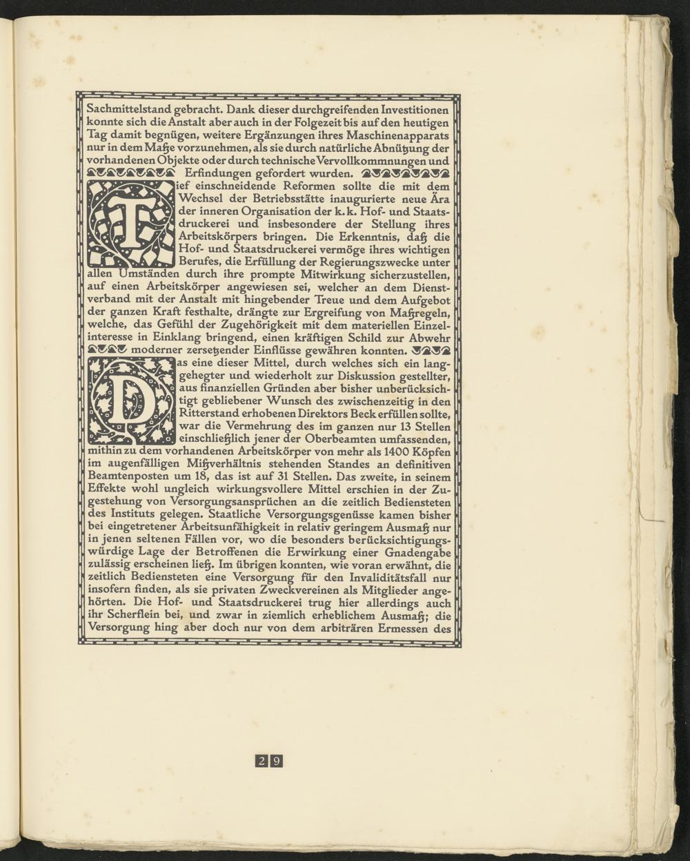 mithin zu dem vorhandenen Arbeitskörper von mehr als 1400 Köpfen im augenfälligen Mißverhältnis stehenden Standes an definitiven Beamtenposten um 18, das ist auf 31 Stellen« Das zweite, in seinem Effekte wohl ungleich wirkungsvollere Mittel erschien in der Zu- gestehung von Versorgungsansprüchen an die zeitlich Bediensteten des Instituts gelegen« Staatliche Versorgungsgenüsse kamen bisher bei eingetretener Arbeitsunfähigkeit in relativ geringem Ausmaß nur in jenen seltenen Fällen vor, wo die besonders berücksichtigungswürdige Lage der Betroffenen die Erwirkung einer Gnadengabe zulässig erscheinen ließ« Im übrigen konnten, wie voran erwähnt, die zeitlich Bediensteten eine Versorgung für den Invaliditätsfall nur insofern finden, als sie privaten Zweckvereinen als Mitglieder angehörten« Die Hof- und Staatsdruckerei trug hier allerdings auch ihr Scherflein bei, und zwar in ziemlich erheblichem Ausmaß; die Versorgung hing aber doch nur von dem arbiträren Ermessen des