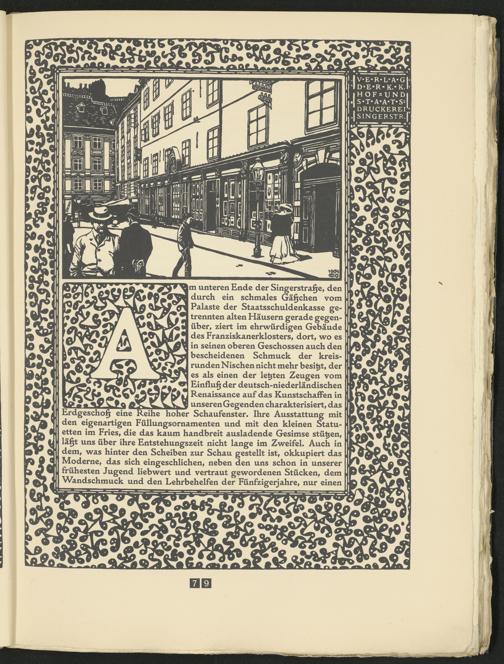 m unteren Ende der Singerstraße, den durch ein schmales Gäuchen vom Palaste der Staatsschuldenkasse getrennten alten Häusern gerade gegenüber, ziert im ehrwürdigen Gebäude des Franziskanerklosters, dort, wo es in seinen oberen Geschossen auch den bescheidenen Schmuck der kreisrunden Nischen nicht mehr besitzt, der es als einen der lebten Zeugen vom Einfluß der deutsch-niederländischen Renaissance auf das Kunstschaffen in