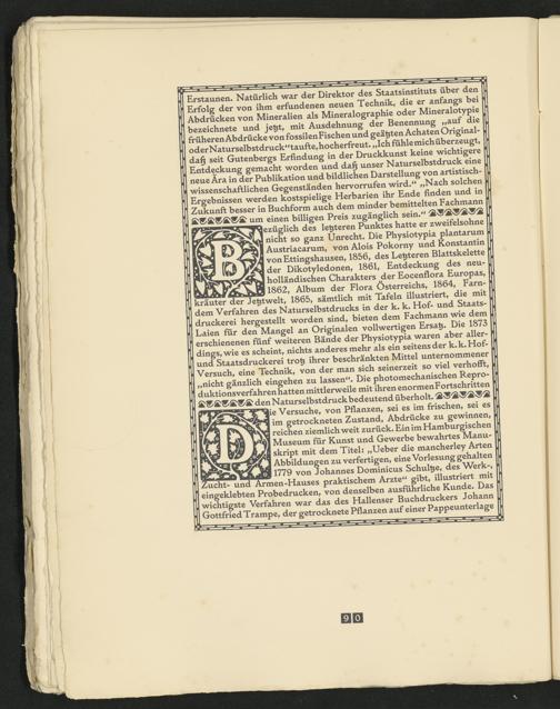 oderNaturselbstdruck“taufte, hocherfreut« „Ich fühlemich überzeugt, da§ seit Gutenbergs Erfindung in der Druckkunst keine wichtigere Entdeckung gemacht worden und da§ unser Naturselbstdruck eine neue Ara in der Publikation und bildlichen Darstellung von artistischwissenschaftlichen Gegenständen hervorrufen wird«“ „Nach solchen Ergebnissen werden kostspielige Herbarien ihr Ende finden und in Zukunft besser in Buchform auch dem minder bemittelten Fachmann um einen billigen Preis zugänglich sein«“