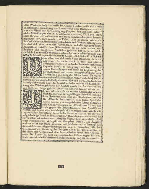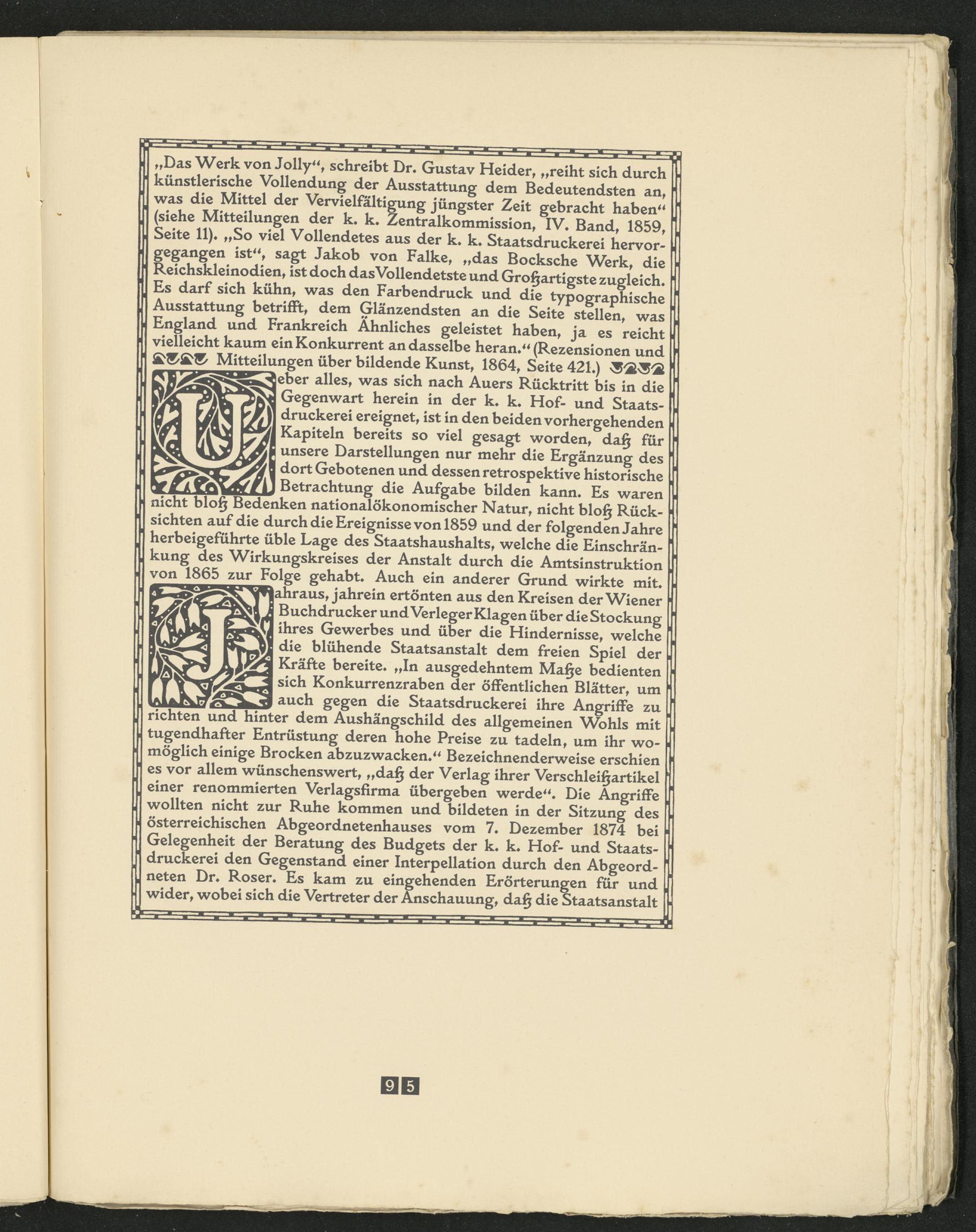 ahraus, jahrein ertönten aus den Kreisen der Wiener Buchdrucker und Verleger Klagen über die Stockung ihres Gewerbes und über die Hindernisse, welche die blühende Staatsanstalt dem freien Spiel der Kräfte bereite. „In ausgedehntem Maße bedienten sich Konkurrenzraben der öffentlichen Blätter, um auch gegen die Staatsdruckerei ihre Angriffe zu richten und hinter dem Aushängschild des allgemeinen Wohls mit tugendhafter Entrüstung deren hohe Preise zu tadeln, um ihr womöglich einige Brocken abzuzwacken.“ Bezeichnenderweise erschien es vor allem wünschenswert, „daß der Verlag ihrer Verschleißartikel einer renommierten Verlagsfirma übergeben werde“. Die Angriffe wollten nicht zur Ruhe kommen und bildeten in der Sitzung des österreichischen Abgeordnetenhauses vom 7. Dezember 1874 bei Gelegenheit der Beratung des Budgets der k. k. Hof- und Staatsdruckerei den Gegenstand einer Interpellation durch den Abgeordneten Dr. Roser. Es kam zu eingehenden Erörterungen für und wider, wobei sich die Vertreter der Anschauung, daß die Staatsanstalt