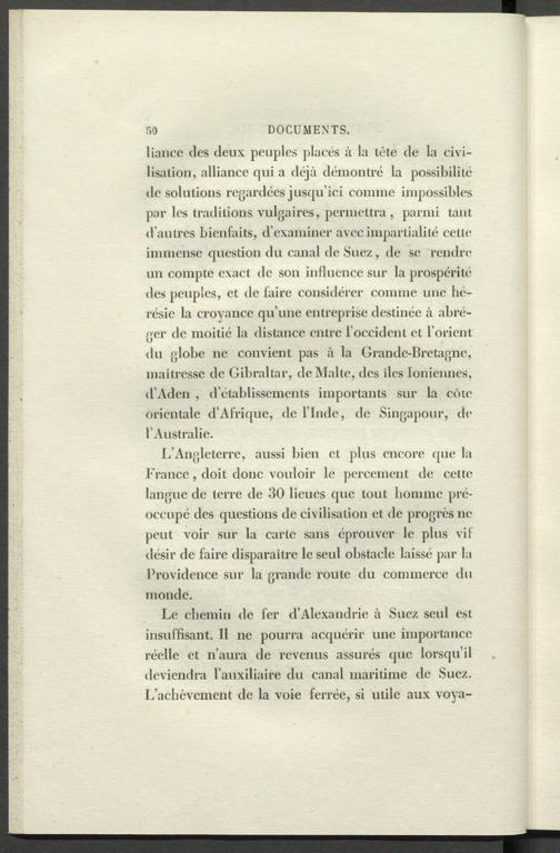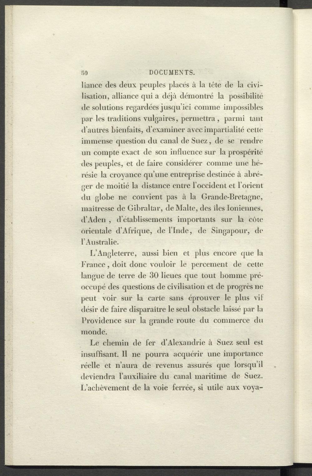 L’Angleterre, aussi bien et plus encore que la France, doit donc vouloir le percement de cette langue de terre de 30 lieues que tout homme préoccupé des questions de civilisation et de progrès ne peut voir sur la carte sans éprouver le plus vif désir de faire disparaître le seul obstacle laissé par la Providence sur la grande route du commerce du monde.