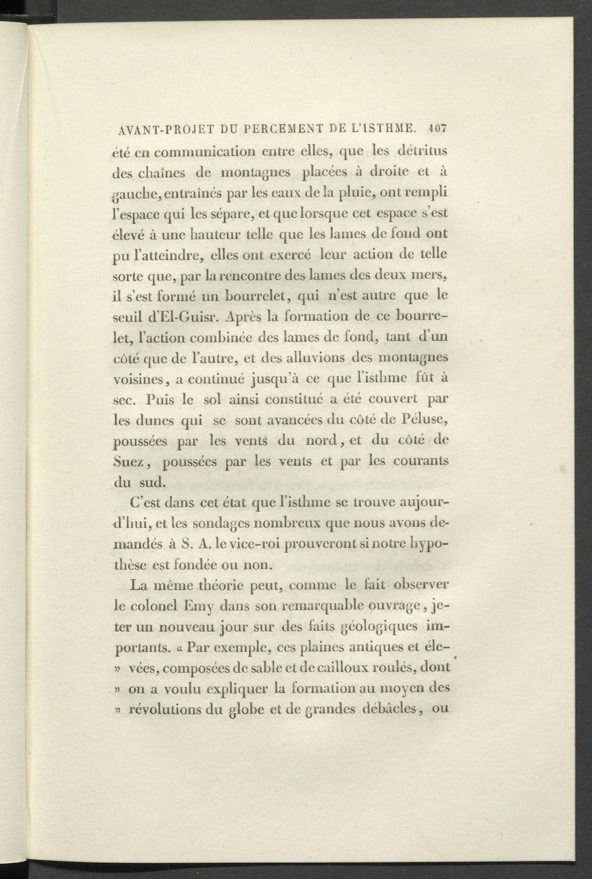 C’est dans cet état que l’isthme sc trouve aujourd’hui, et les sondages nombreux que nous avons demandés à S. A. le vice-roi prouveront si notre hypothèse est fondée ou non.