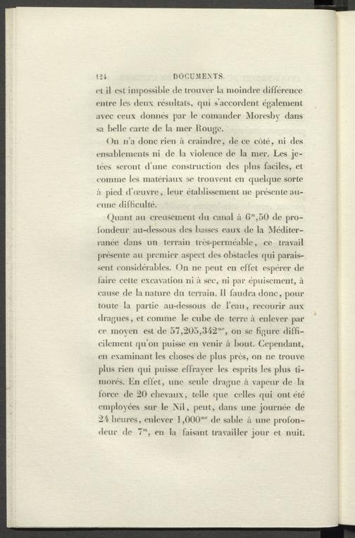 Quant au creusement du canal à G“ 1 ,50 de profondeur au-dessous des basses eaux de la Méditerranée dans un terrain très-perméable, ce travail présente au premier aspect des obstacles qui paraissent considérables. On ne peut en effet espérer de faire cette excavation ni à sec, ni par épuisement, à cause de la nature du terrain. 11 faudra donc, pour toute la partie au-dessous de l’eau, recourir aux dragues, et comme le cube de terre à enlever par ce moyen est de 57,205,342”% on se figure difficilement qu’on puisse en venir à bout. Cependant, en examinant les choses de plus près, on ne trouve plus rien qui puisse effrayer les esprits les plus timorés. En effet, une seule drague à vapeur de la force de 20 chevaux, telle que celles qui ont été employées sur le ^iil, peut, dans une journée de 24 heures, enlever 1,000'"' de sable à une profondeur de 7 m , en la faisant travailler jour et nuit.