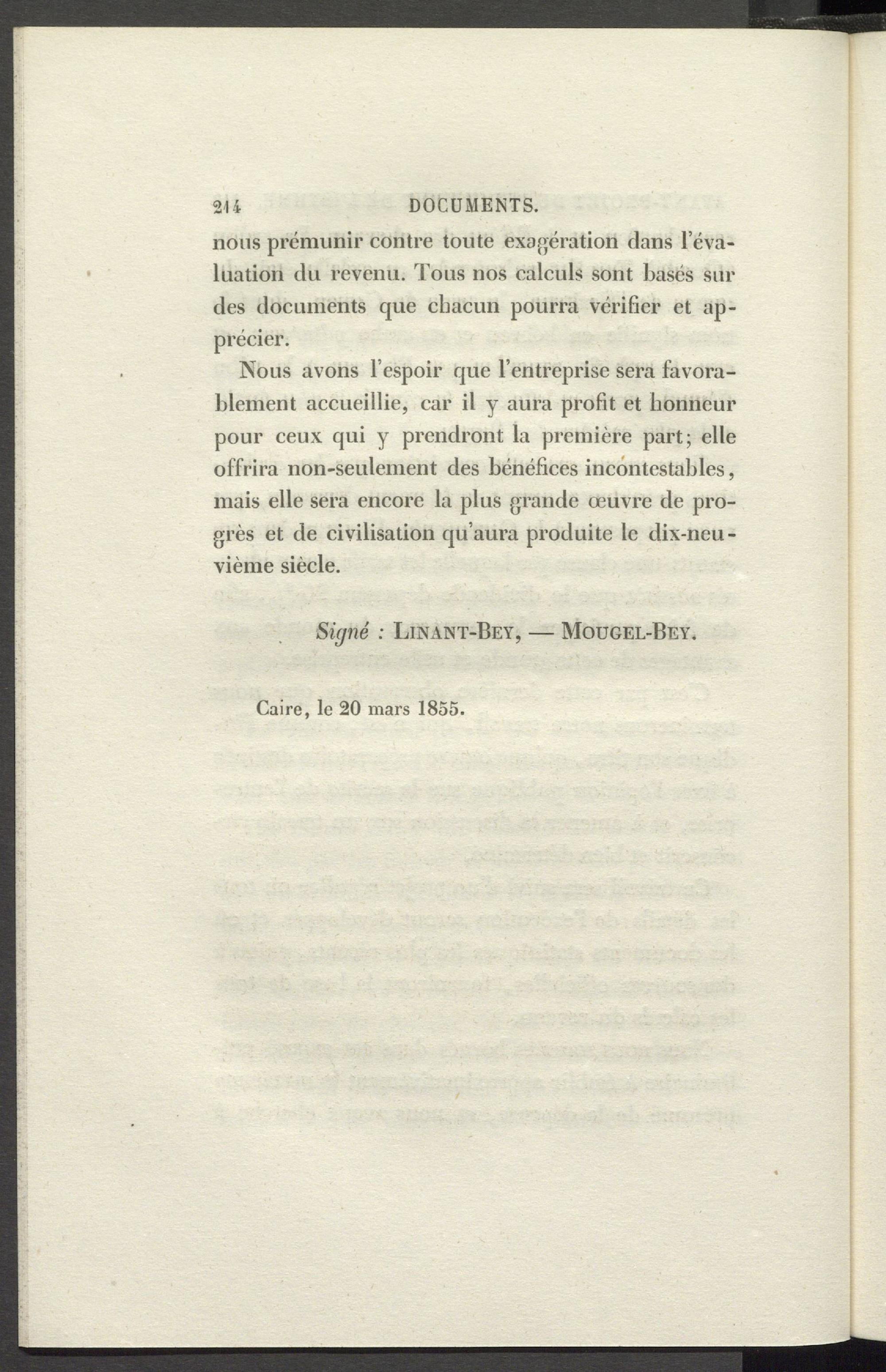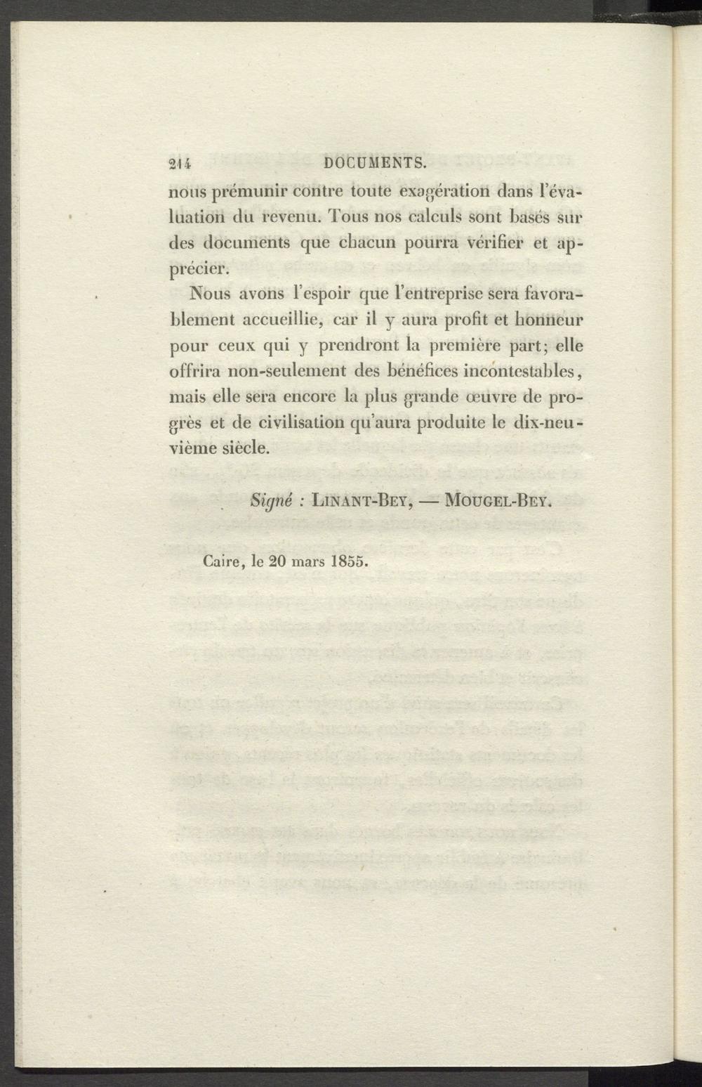 Signé : Linant-Bey, — Mougel-Bey.