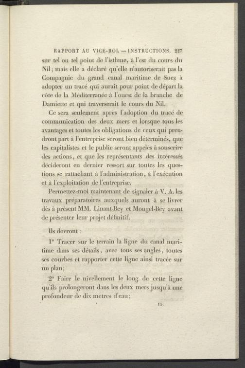 Permettez-moi maintenant de signaler à Y. À. les travaux préparatoires auxquels auront à se livrer dès à présent MM. Linant-Bey et Mougel-Bey avant de présenter leur projet définitif.