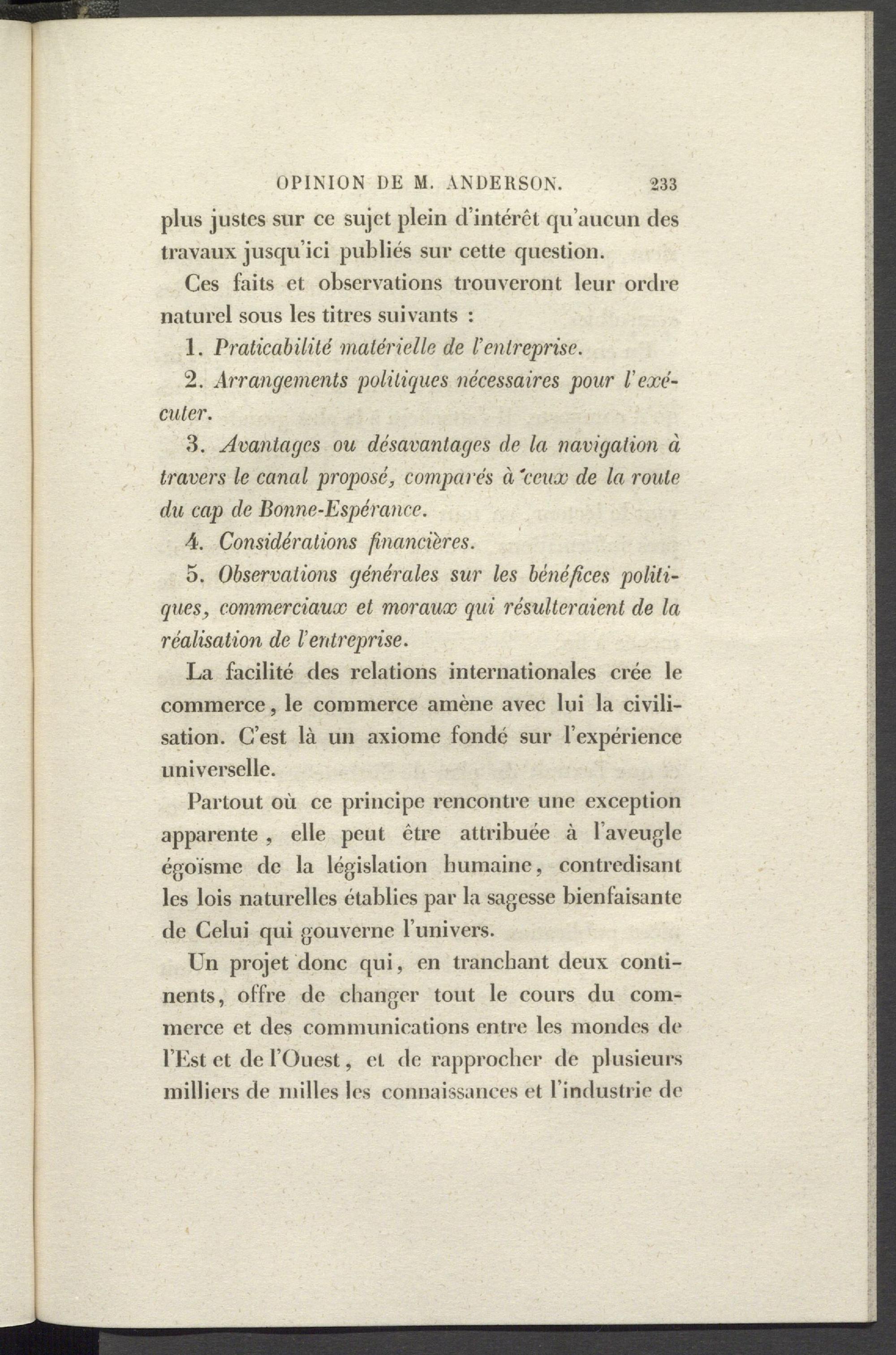3. Avantages ou désavantages de la navigation à travers le canal proposé, comparés à 'ceux de la route du cap de Bonne-Espérance.