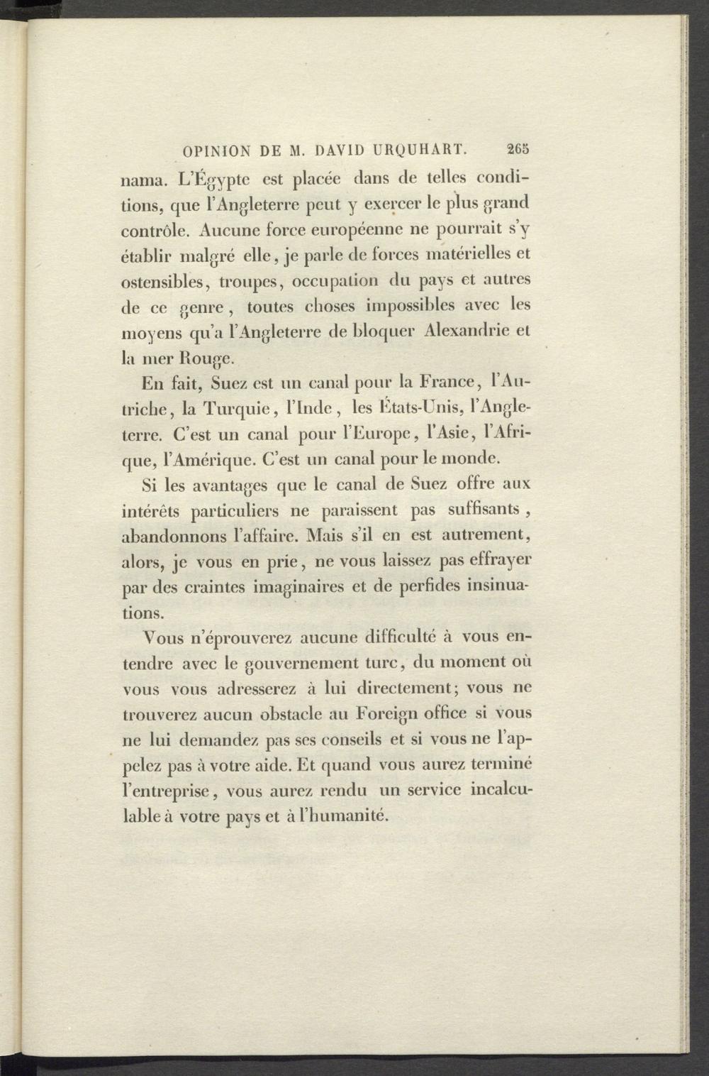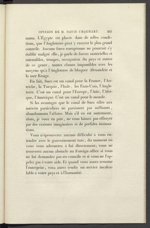 Si les avantages que le canal de Suez offre aux intérêts particuliers ne paraissent pas suffisants , abandonnons l’affaire. Mais s’il en est autrement, alors, je vous en prie, ne vous laissez pas effrayer par des craintes imaginaires et de perfides insinuations.