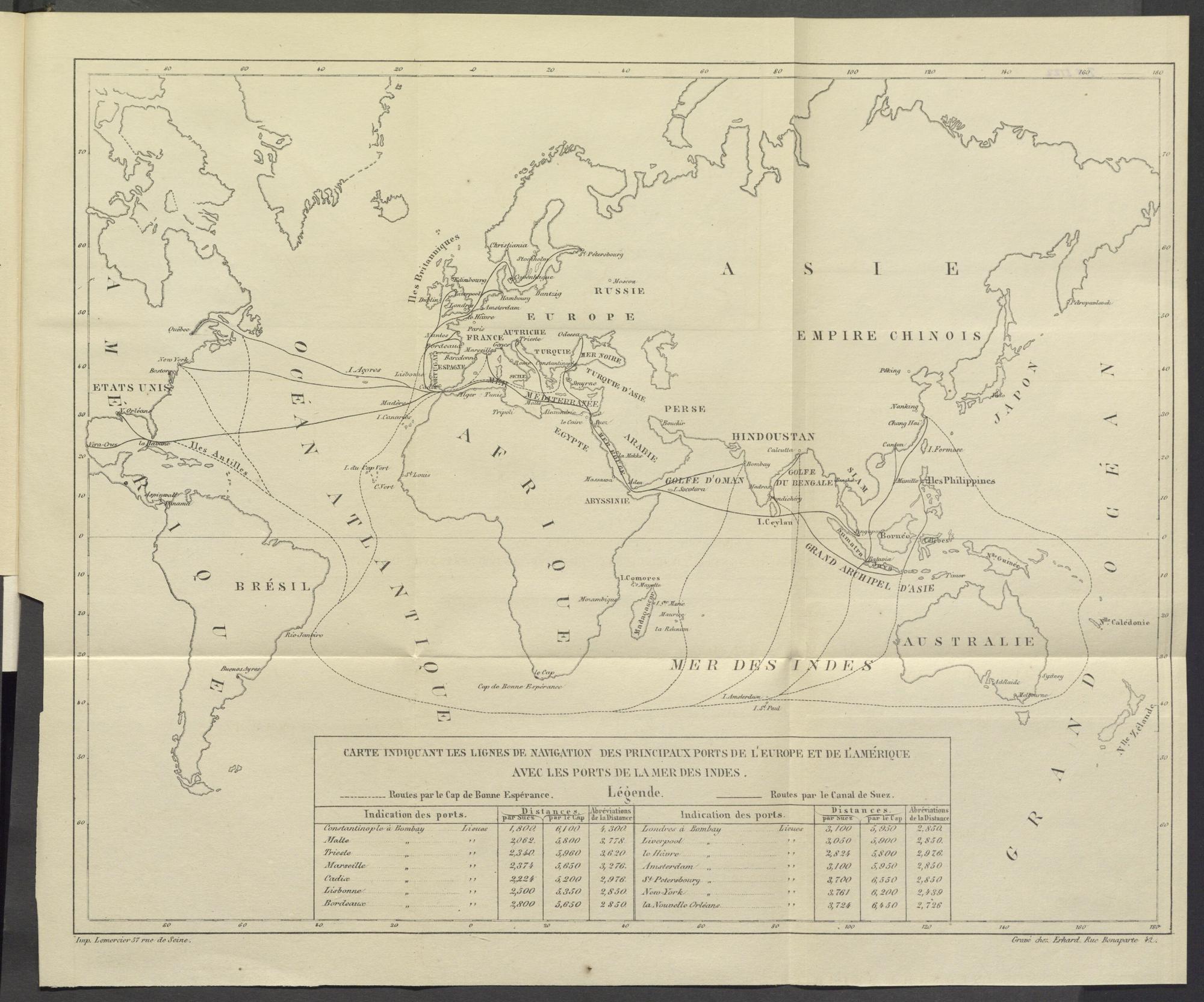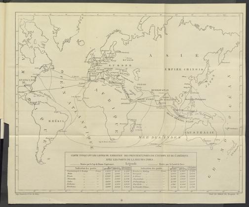 CARTE TNDTÇUANTTiES LIGNESDE XATIGATIOX DES l’RIATlPAUXPORTS DE I ’ EUROPE ET DE ilAMERlOCE