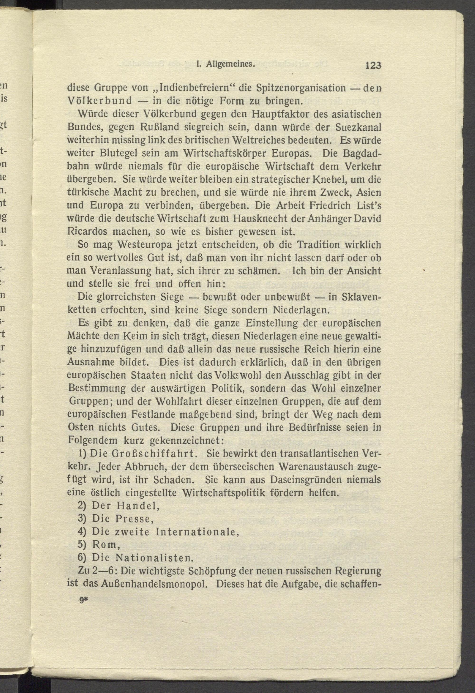 Es gibt zu denken, daß die ganze Einstellung der europäischen Mächte den Keim in sich trägt, diesen Niederlagen eine neue gewaltige hinzuzufügen und daß allein das neue russische Reich hierin eine Ausnahme bildet. Dies ist dadurch erklärlich, daß in den übrigen europäischen Staaten nicht das Volks wohl den Ausschlag gibt in der Bestimmung der auswärtigen Politik, sondern das Wohl einzelner Gruppen; und der Wohlfahrt dieser einzelnen Gruppen, die auf dem europäischen Festlande maßgebend sind, bringt der Weg nach dem Osten nichts Gutes. Diese Gruppen und ihre Bedürfnisse seien in Folgendem kurz gekennzeichnet: