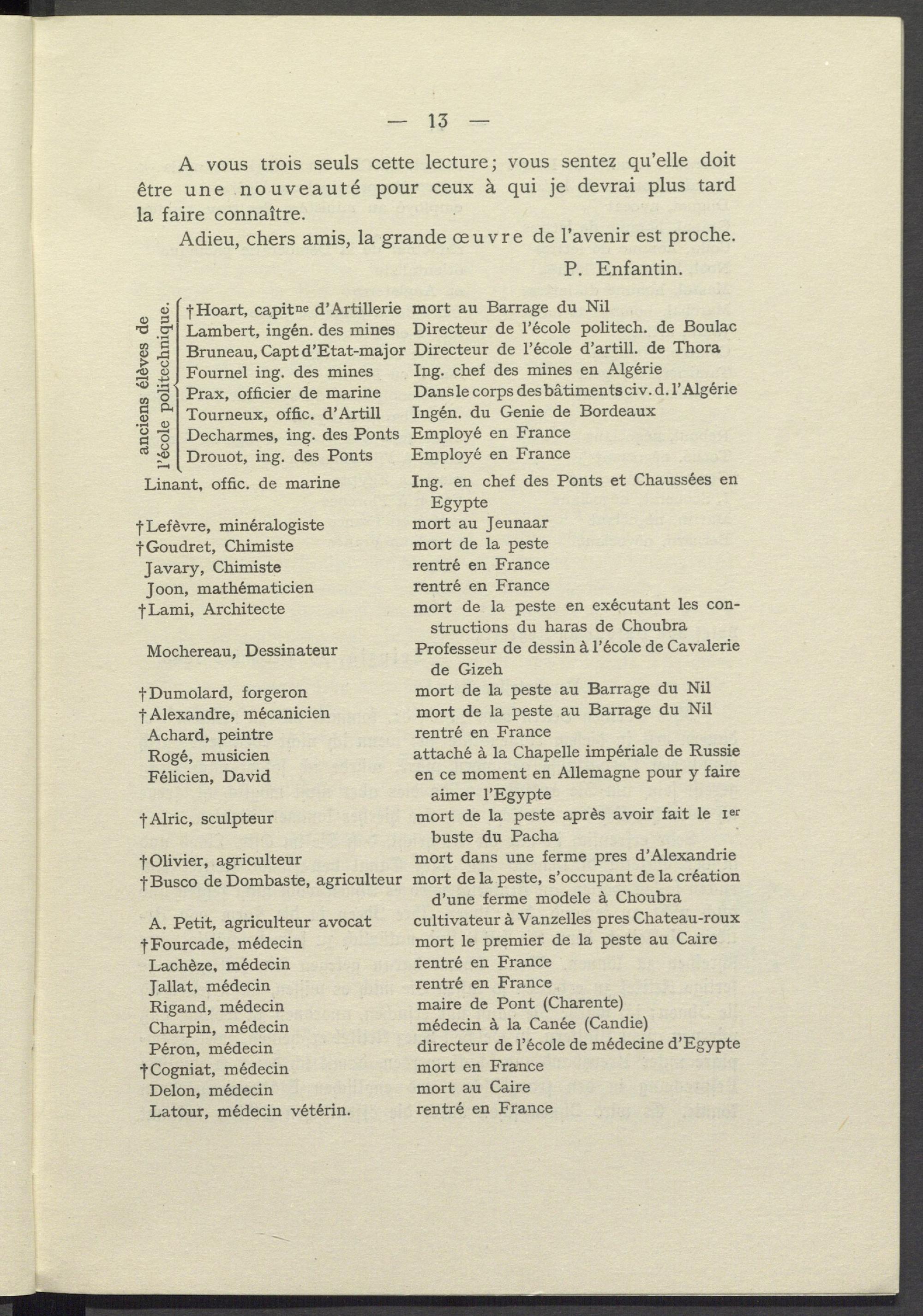 Adieu, chers amis, la grande oœuvre de l'avenir est proche. P. Enfantin.