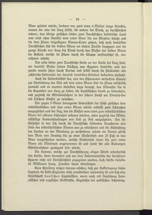Eure Excellenz mögen daraus ersehen, daß zur Aufbringung dieses Capitals die Hilfe Englands nicht unmittelbar notwendig ist und daß eine Gesellschaft deutscher Capitalisten, wenn auch mit 3uziehung französischer und englischer Geldkräfte, Angesichts der politischen Schwierig