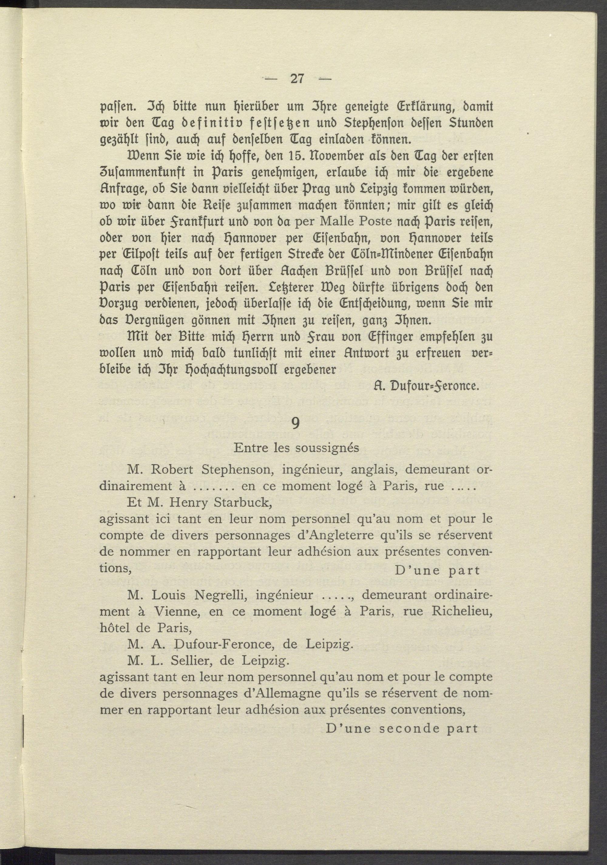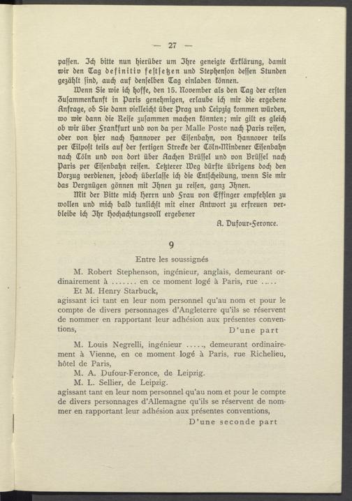 passen. Ich bitte nun hierüber um Ihre geneigte Erklärung, damit wir den Tag definitiv festsehen und Stephenson dessen Stunden gezählt sind, auch auf denselben Tag einladen können.
