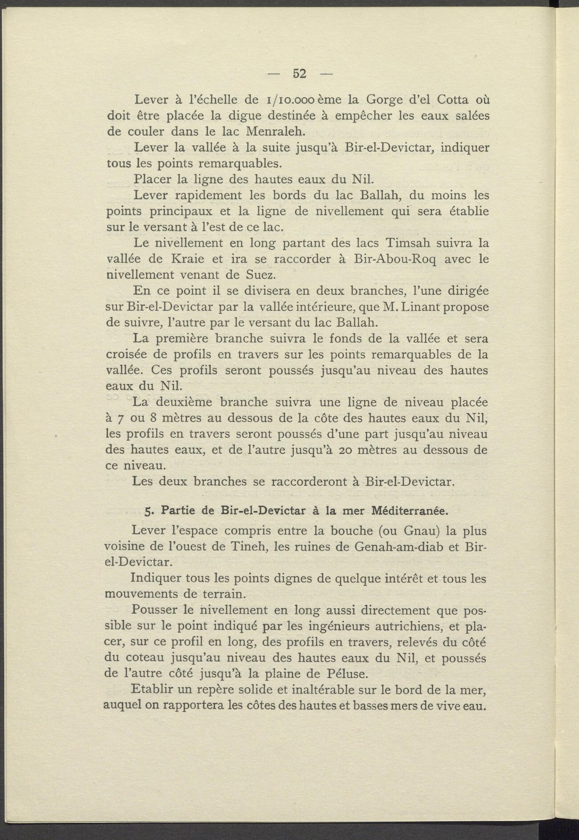 53 La deuxième branche suivra une ligne de niveau placée à 7 ou 8 mètres au dessous de la côte des hautes eaux du Nil, les profils en travers seront poussés d'une part jusqu'au niveau des hautes eaux, et de l'autre jusqu'à 20 mètres au dessous de ce niveau.