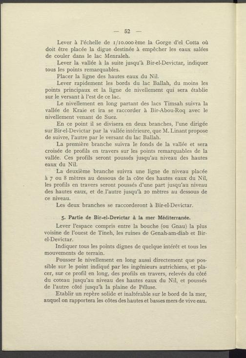 5. Partie de Bir- el- Devictar à la mer Méditerranée. Lever l'espace compris entre la bouche( ou Gnau) la plus voisine de l'ouest de Tineh, les ruines de Genah- am- diab et Birel- Devictar.