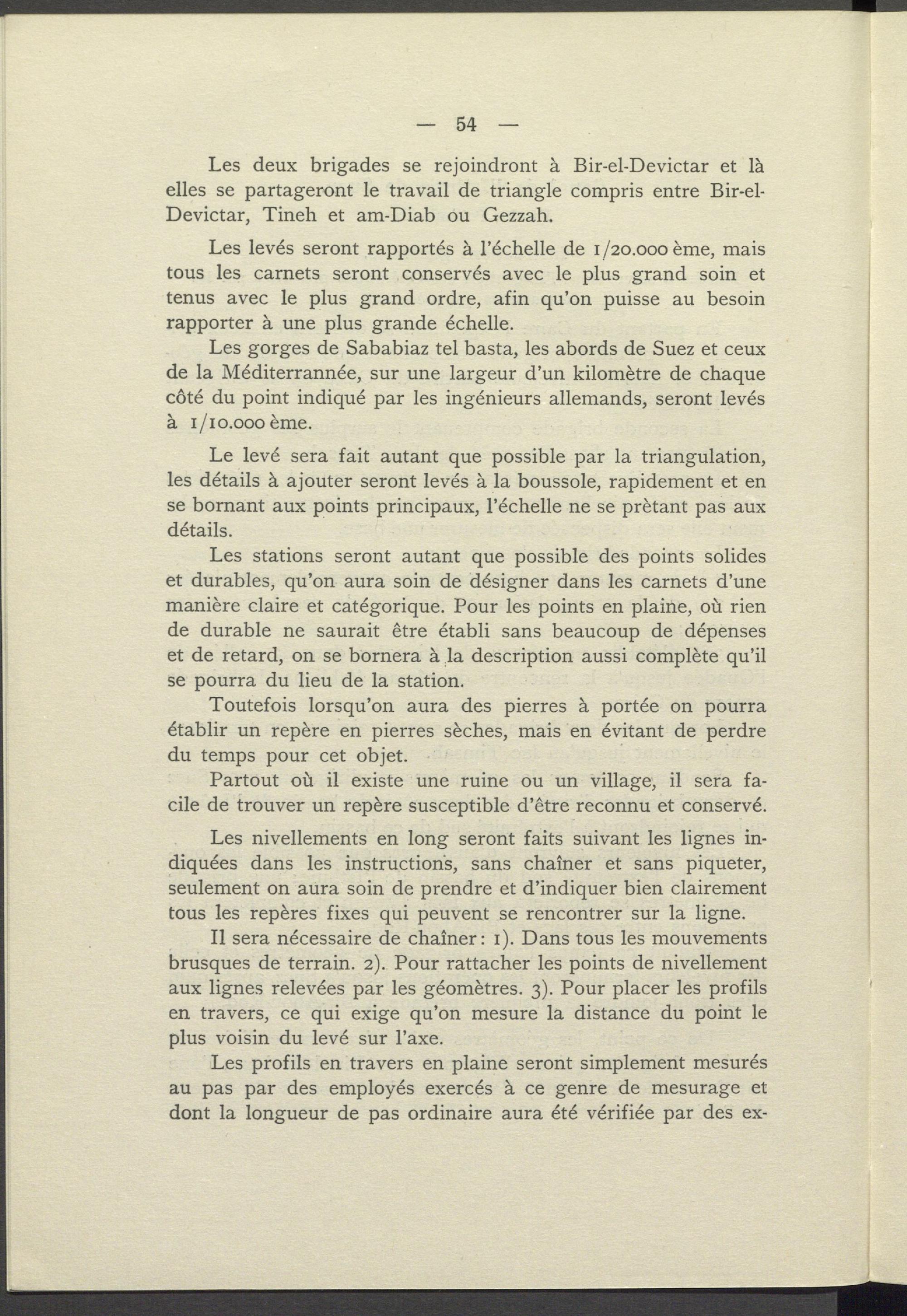 Les levés seront rapportés à l'échelle de 1/ 20.000 ème, mais tous les carnets seront conservés avec le plus grand soin et tenus avec le plus grand ordre, afin qu'on puisse au besoin rapporter à une plus grande échelle.