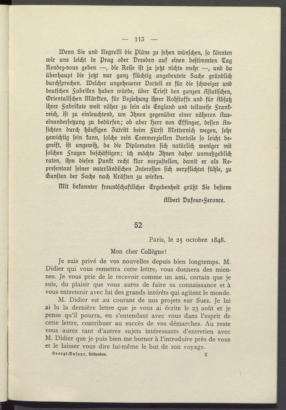 Mit bekannter freundschaftlicher Ergebenheit grüßt Sie bestens Albert Dufour- Feronce.