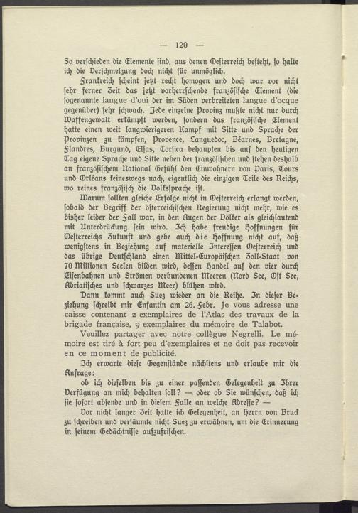 Dor nicht langer Zeit hatte ich Gelegenheit, an Herrn von Bruck zu schreiben und versäumte nicht Suez zu erwähnen, um die Erinnerung in seinem Gedächtnisse aufzufrischen.