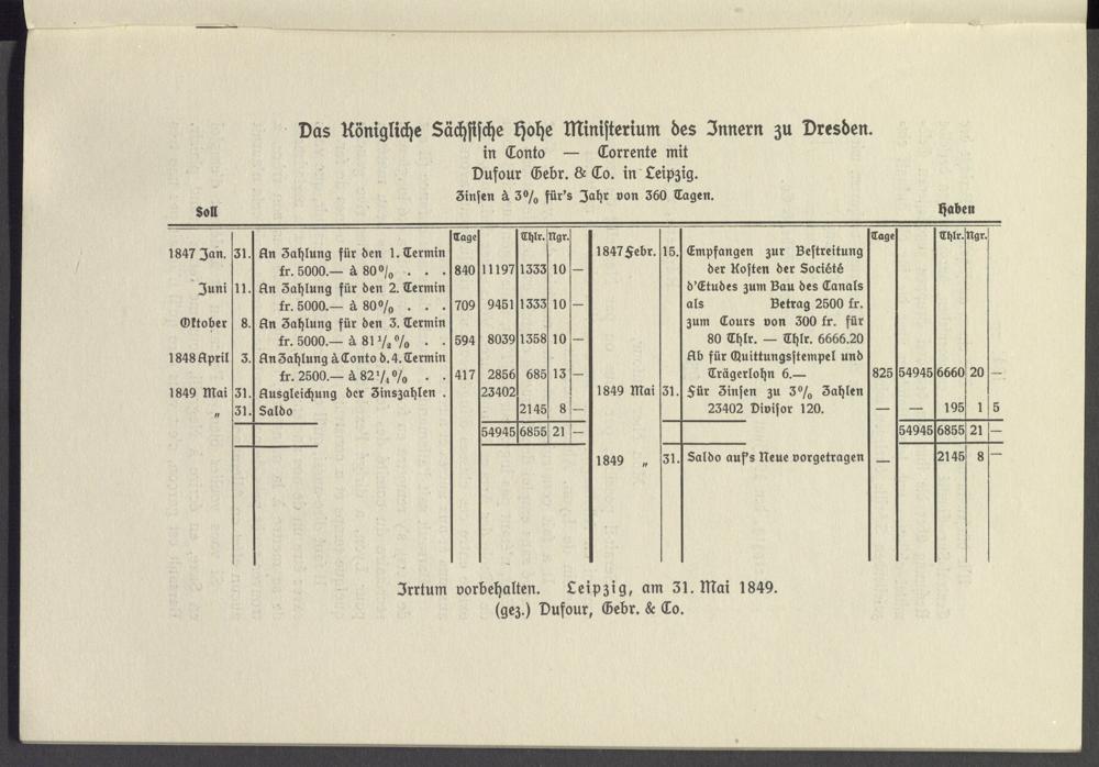 1847 febr. 15. Empfangen zur Bestreitung der Kosten der Société d'Etudes zum Bau des Canals als Betrag 2500 fr.