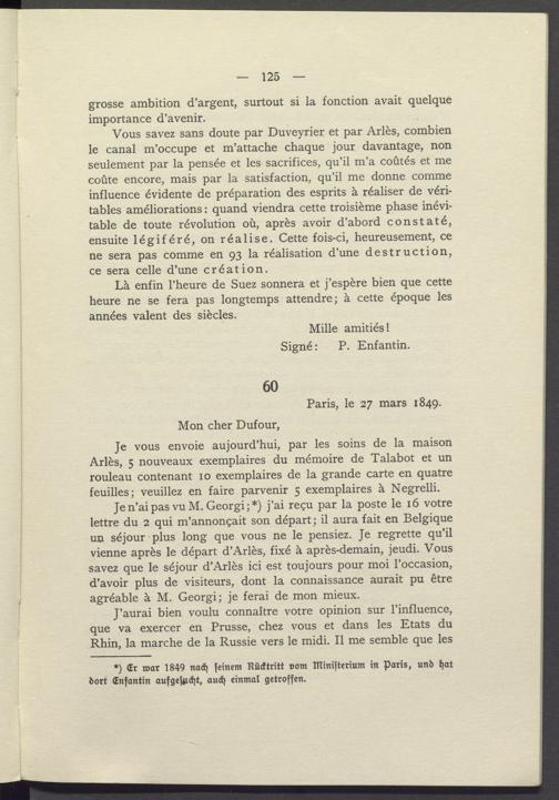 *) Er war 1849 nach seinem Rücktritt vom Ministerium in Paris, und hat dort Enfantin aufgesucht, auch einmal getroffen.
