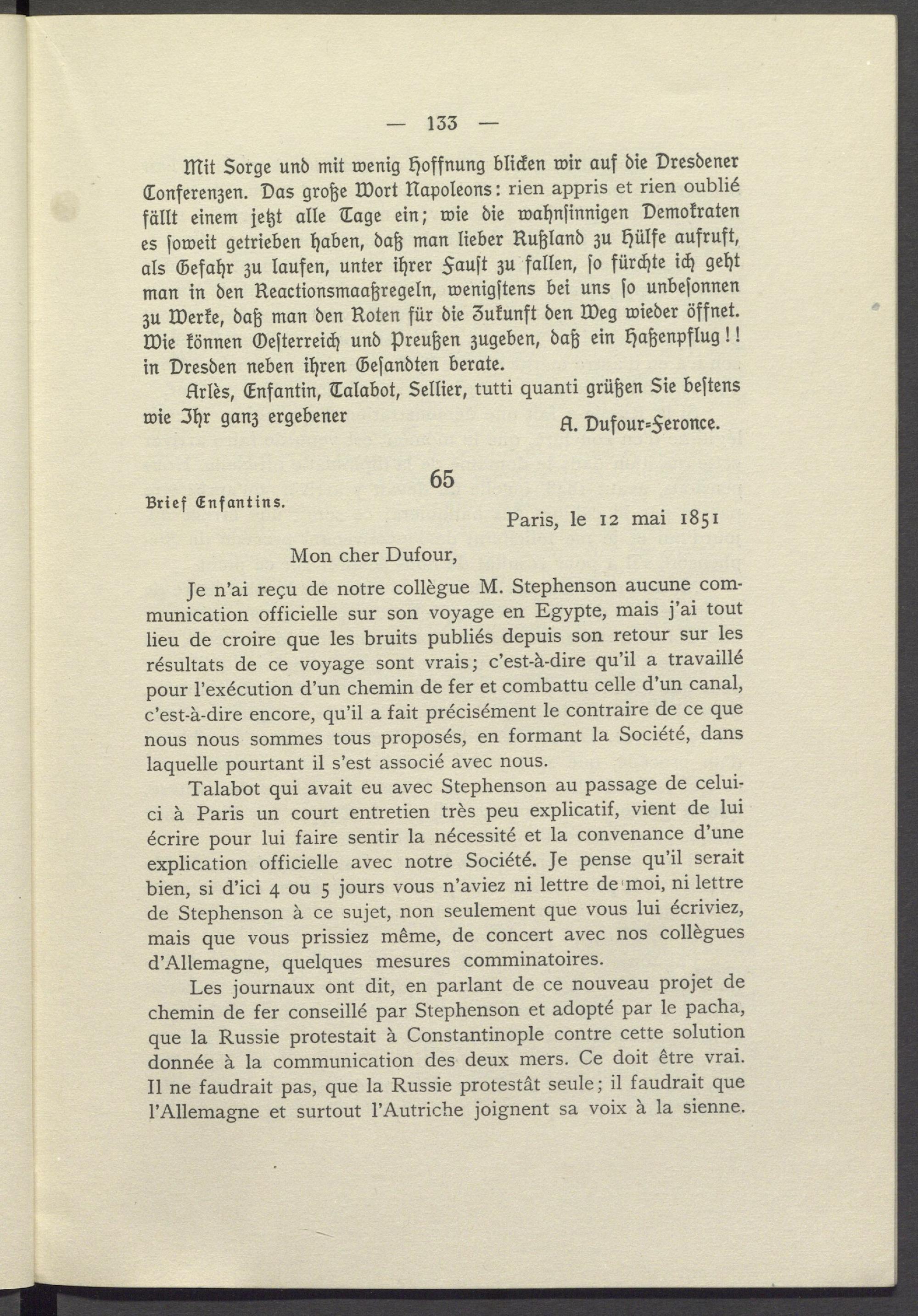 Arlès, Enfantin, Talabot, Sellier, tutti quanti grüßen Sie bestens wie Ihr ganz ergebener A. Dufour- Feronce.