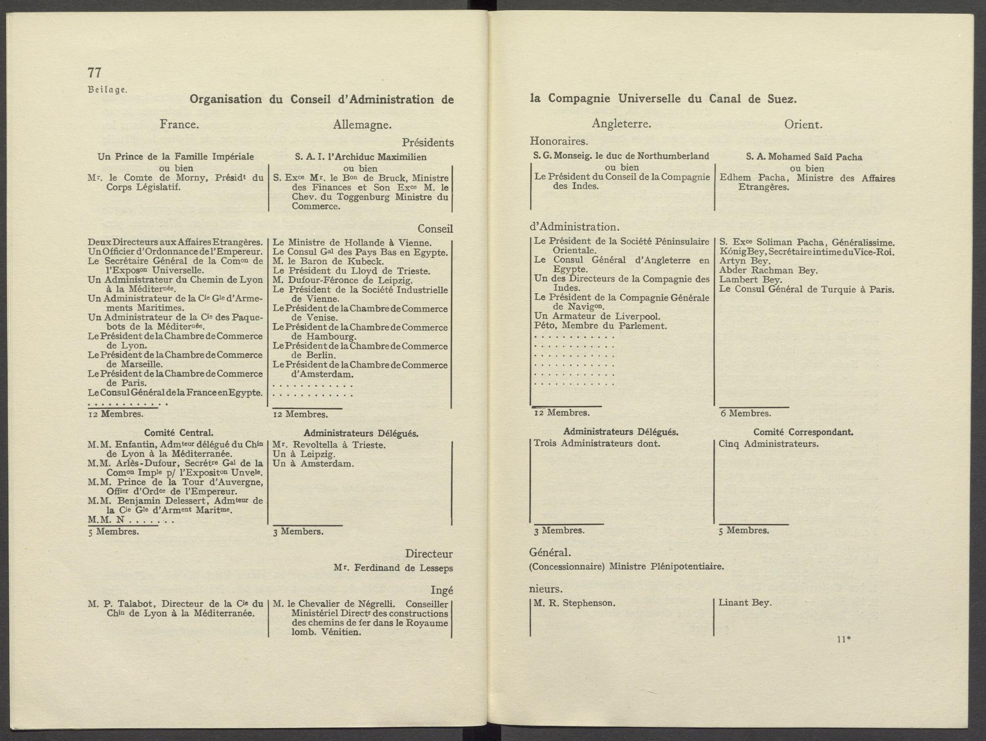 M.M. Enfantin, Admteur délégué du Chin| Mr. Revoltella à Trieste. de Lyon à la Méditerranée. M.M. Arlès- Dufour, Secrétre Gal de la Comon Imple p/ l'Expositon Unvele. M.M. Prince de la Tour d'Auvergne, Offier d'Ordce de l'Empereur. M.M. Benjamin Delessert, Admteur de la Cie Gle d'Arment Maritme.