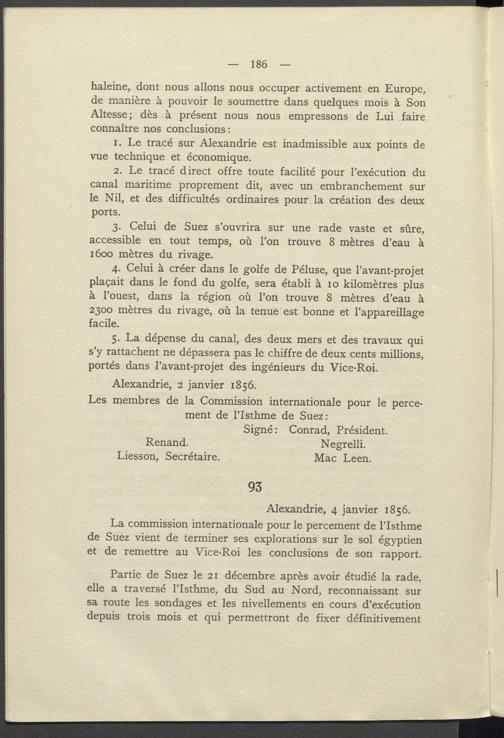 5. La dépense du canal, des deux mers et des travaux qui s'y rattachent ne dépassera pas le chiffre de deux cents millions, portés dans l'avant- projet des ingénieurs du Vice- Roi.