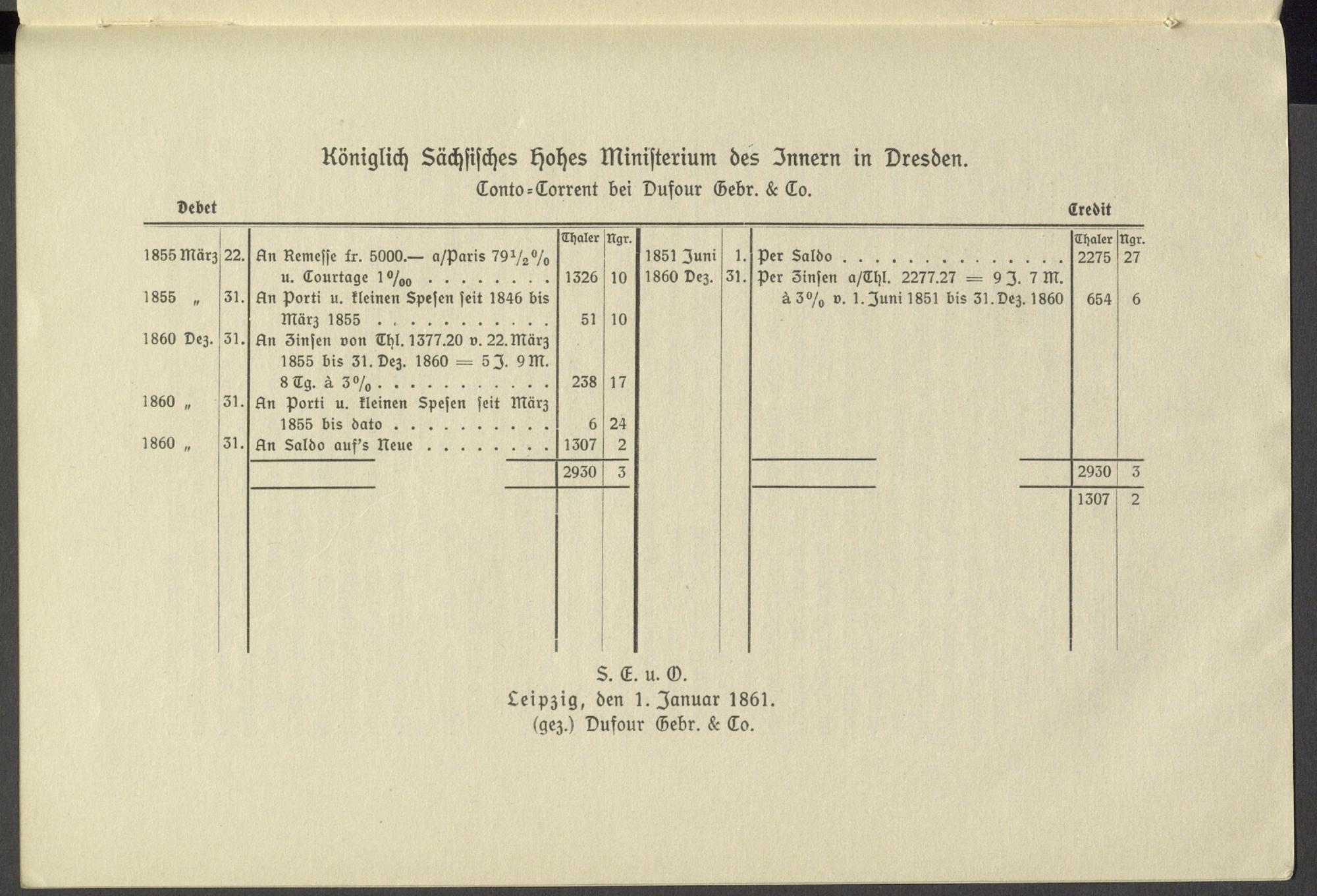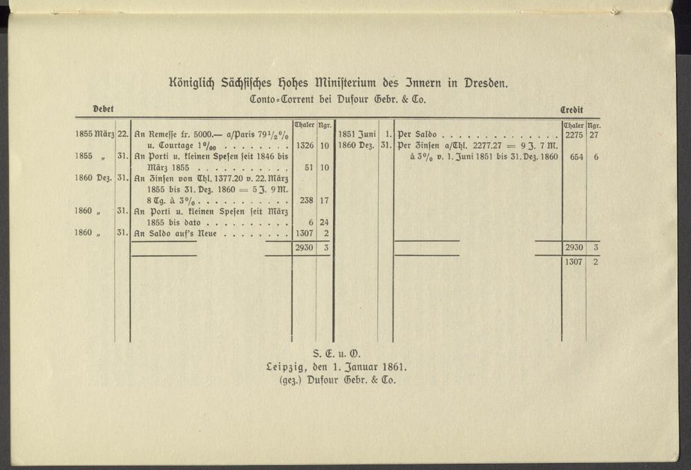Leipzig, den 1. Januar 1861. ( gez.) Dufour Gebr.& Co.