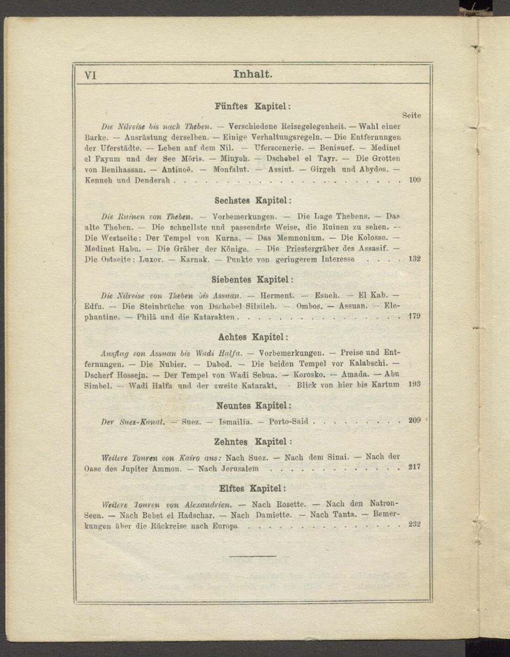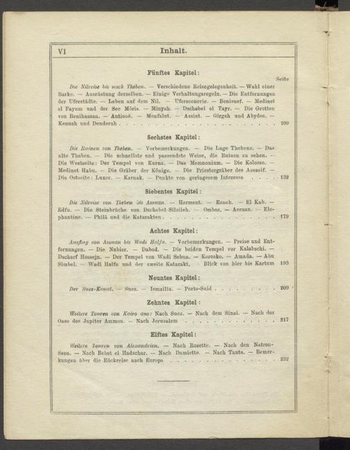 Die Nilreise bis nach Theben. — Verschiedene Reisegelegenbeit. — Wahl einer Barke. — Ausrüstung derselben. — Einige Verhaltungsregeln. — Die Entfernungen der Uferstädte. — Leben auf dem Nil. — Uferscenerie. — Benisuef. — Medinet el Fayum und der See BlÖris. — Minyeh. — Dscliebel el Tayr. — Die Grotten von Benihassan. — Antinoe. — Monfalut. — Assiut. — Girgeh und Abydos. — Kenneh und Denderah.109